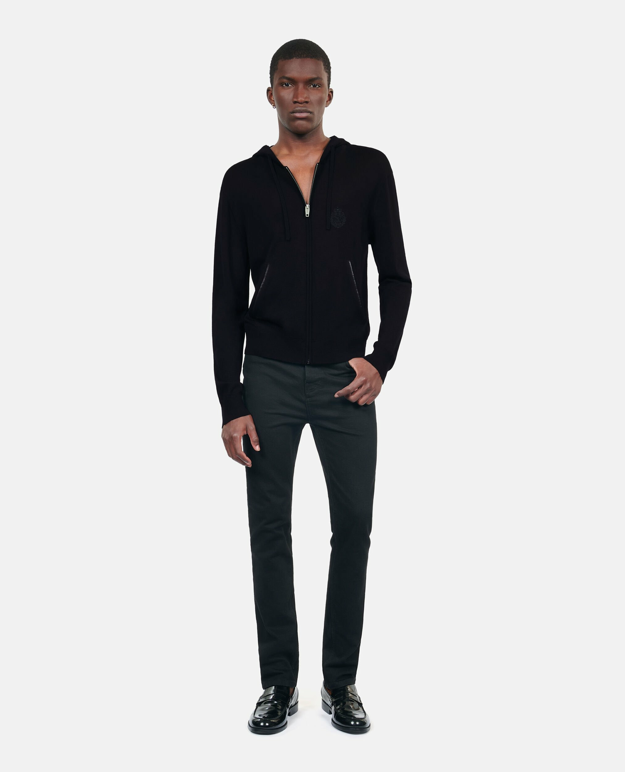 Adoptez l’élégance brute et la chaleur naturelle avec ce cardigan noir en laine signé The Kooples. Une pièce essentielle pour affirmer un style urbain et sophistiqué, tout en restant confortable au quotidien.
