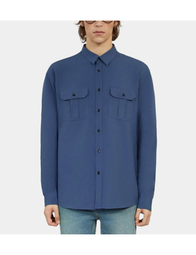 Conçue pour une coupe droite impeccable, cette chemise mise sur un col classique et des manches longues pour un rendu à la fois sobre et sophistiqué. Les poignets ornés de rivets et la patte de boutonnage américaine apportent une touche de caractère discrète, tandis que les poches poitrine plaquées à rabat renforcent son côté pratique et stylé.