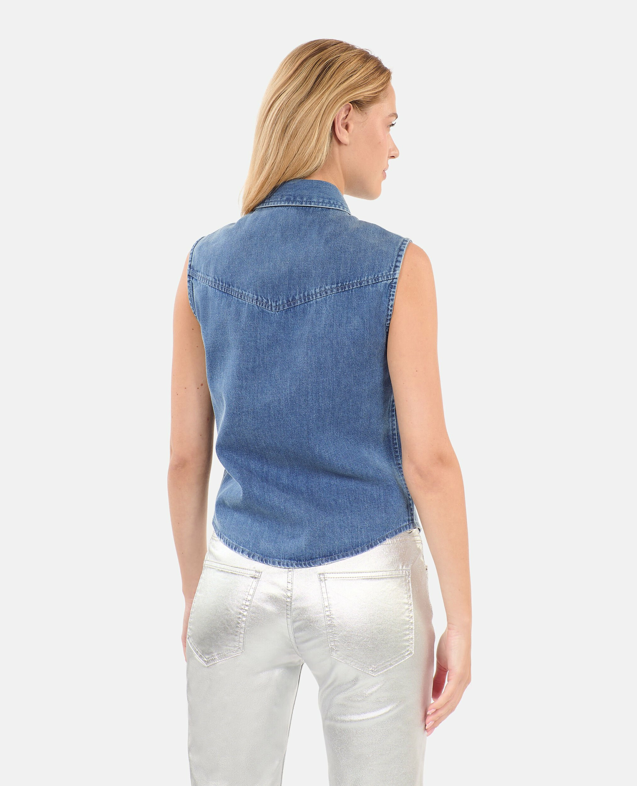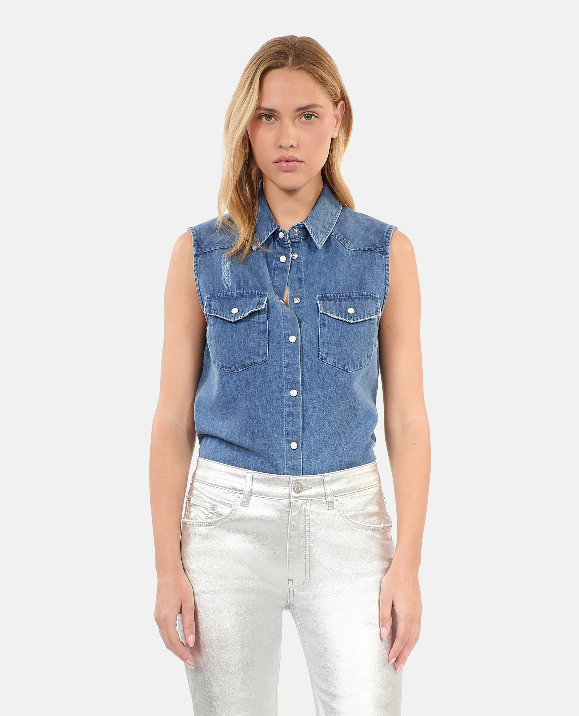 Affirmez votre style avec cette chemise en denim bleu sans manches signée The Kooples, alliant modernité et élégance intemporelle. Une pièce essentielle pour une silhouette ajustée et un look résolument urbain.