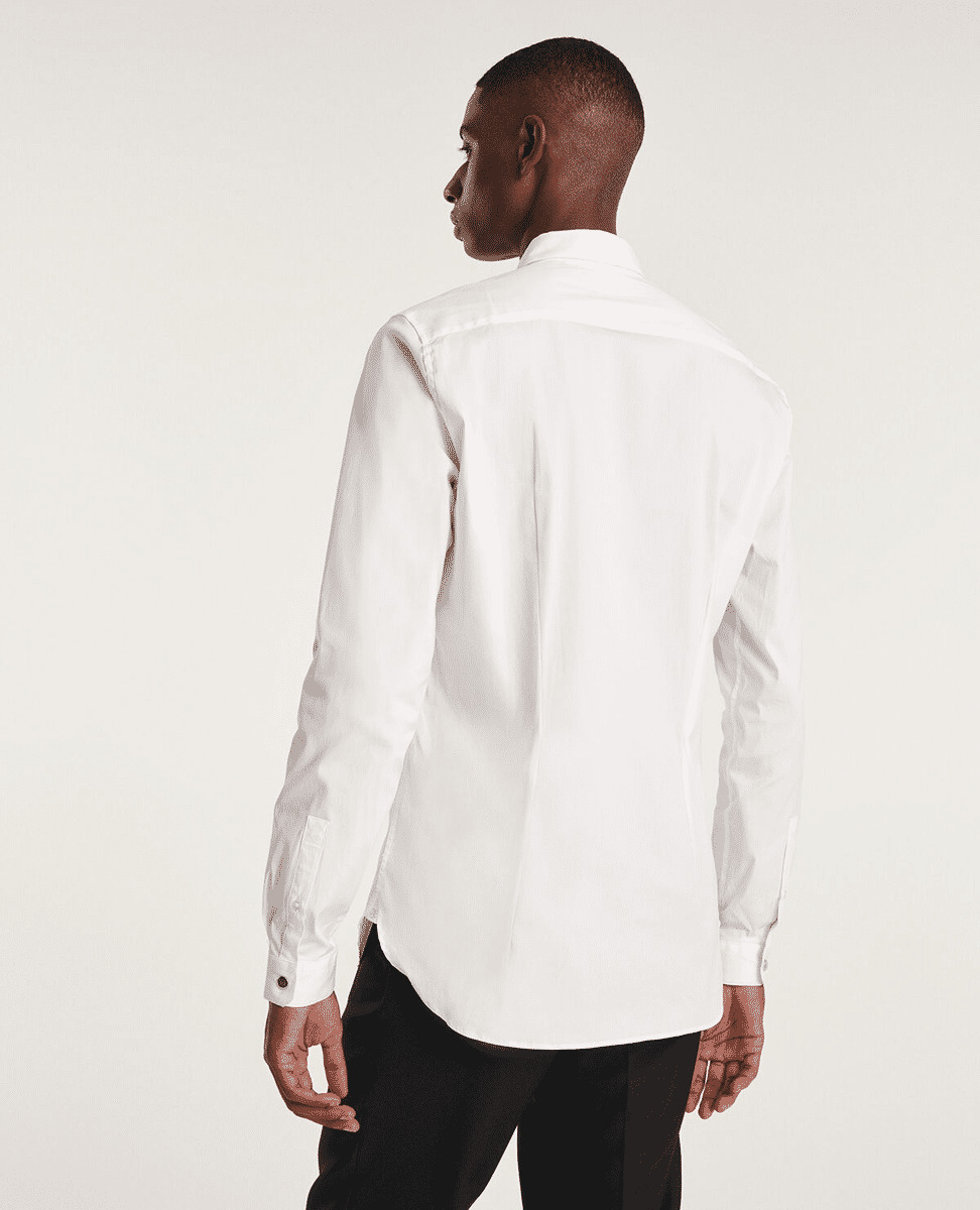 Adoptez l’élégance contemporaine avec cette chemise en popeline stretch signée The Kooples. Une pièce essentielle qui allie confort et style pour sublimer votre allure au quotidien.