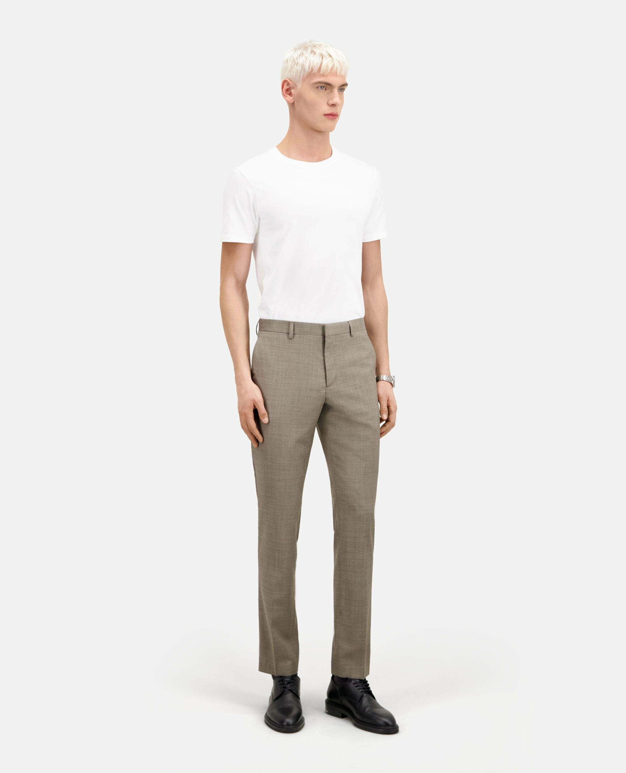 Réponse. Le pantalon est confectionné en tissu italien composé à 99% de laine et 1% d’élasthanne pour plus de confort.