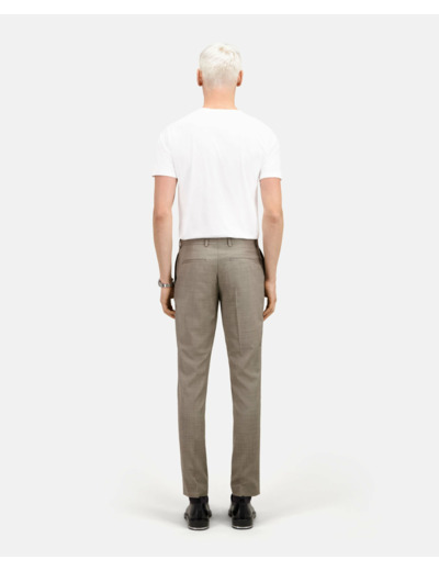 Conçu pour épouser parfaitement la silhouette, ce pantalon offre une taille classique avec passants, sublimée par un pli cassé à l’avant et à l’arrière qui structure la tenue. Les poches latérales italiennes et les poches passepoilées au dos apportent fonctionnalité et finition soignée, tandis que la fermeture zippée avec bouton de rappel et agrafe assure un maintien optimal.