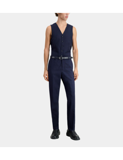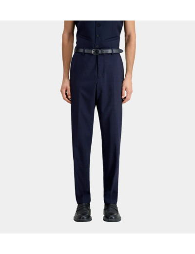 Affirmez votre élégance avec ce pantalon de costume bleu marine en laine à micro motifs, alliant tradition et modernité. Une pièce essentielle pour un look raffiné et contemporain.