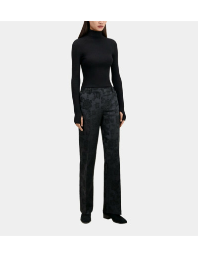 Affirmez votre élégance avec ce pantalon tailleur noir signé The Kooples, où la subtilité des fleurs jacquard ton sur ton sublime une coupe droite intemporelle. Une pièce pensée pour allier style et confort, idéale pour une allure chic et moderne en toute occasion.