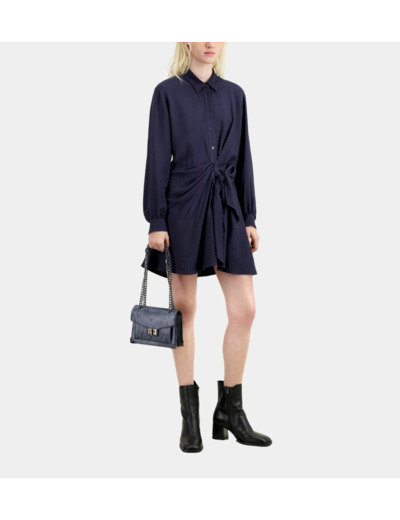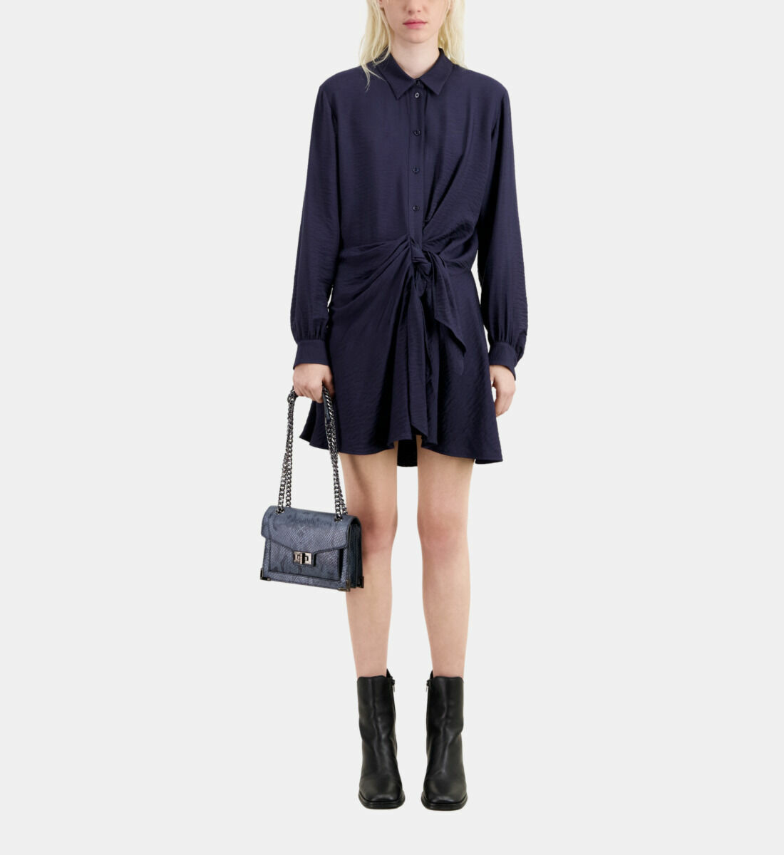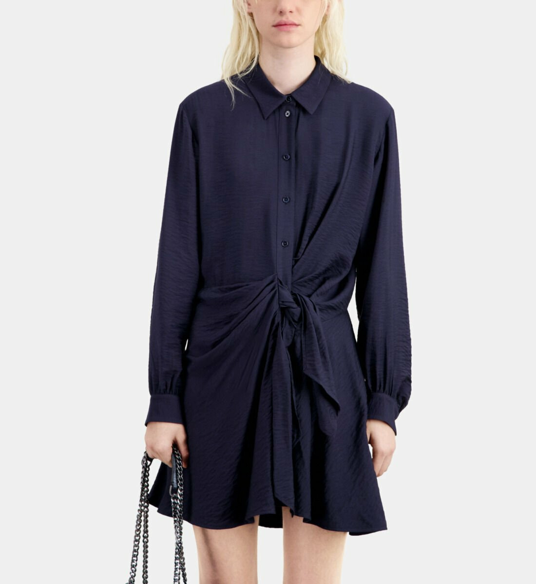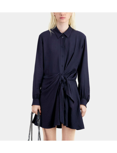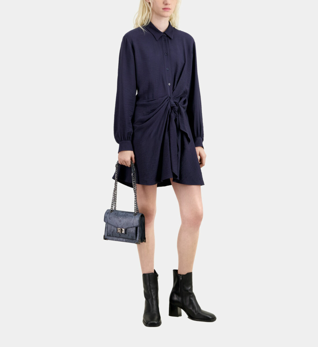 Affirmez votre élégance avec cette robe courte bleu marine signée The Kooples, où sophistication et confort s’entrelacent parfaitement. Son drapé subtil à la taille sublime la silhouette tout en apportant une touche contemporaine.