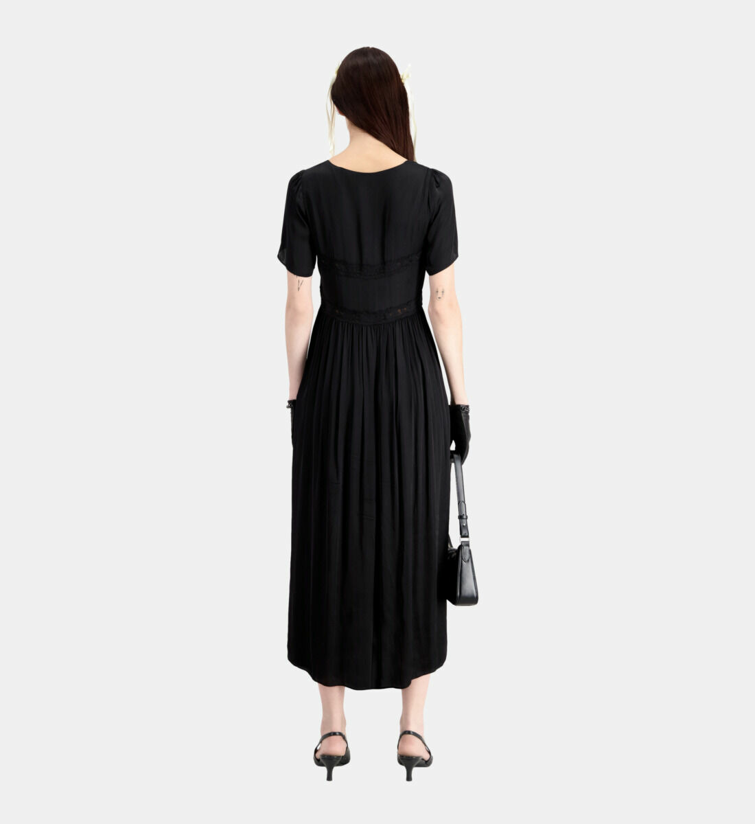 Confectionnée dans des matières nobles, cette robe joue sur le contraste entre la douceur de la viscose et la finesse de la dentelle en polyamide. Sa coupe fluide épouse les formes tout en offrant un confort optimal, idéale pour vos soirées ou événements chics. Le haut en dentelle apporte une touche de sensualité maîtrisée, tandis que la doublure assure une opacité parfaite.