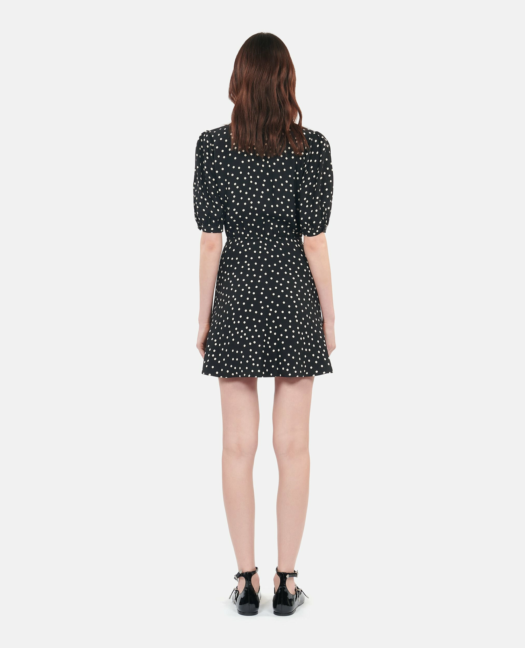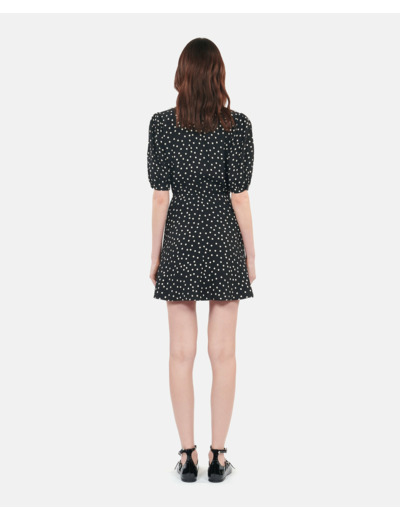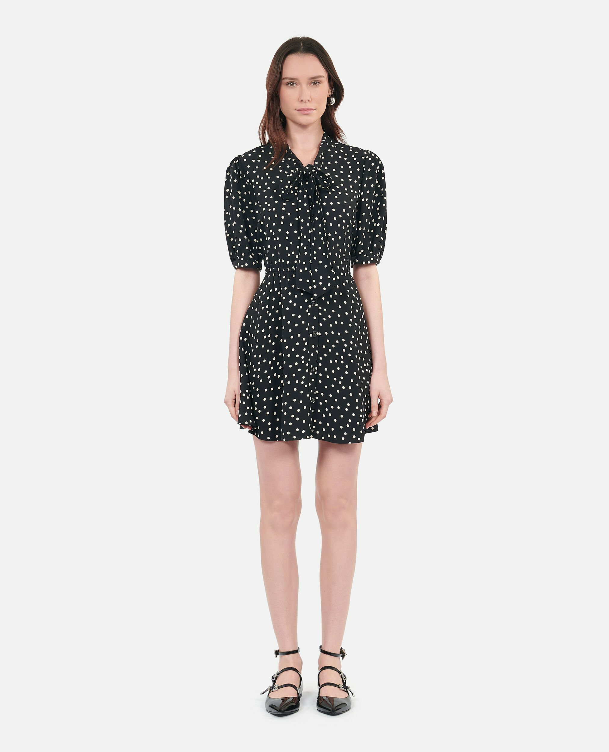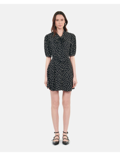 Affirmez votre style avec cette robe courte à pois signée The Kooples, un classique revisité pour sublimer votre silhouette. Son imprimé noir et blanc apporte une touche graphique et élégante, idéale pour toutes vos occasions.