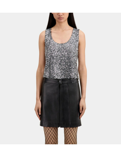 Brillez intensément lors de vos soirées avec ce top court argenté à sequins signé The Kooples. Une pièce audacieuse qui transforme instantanément votre look.