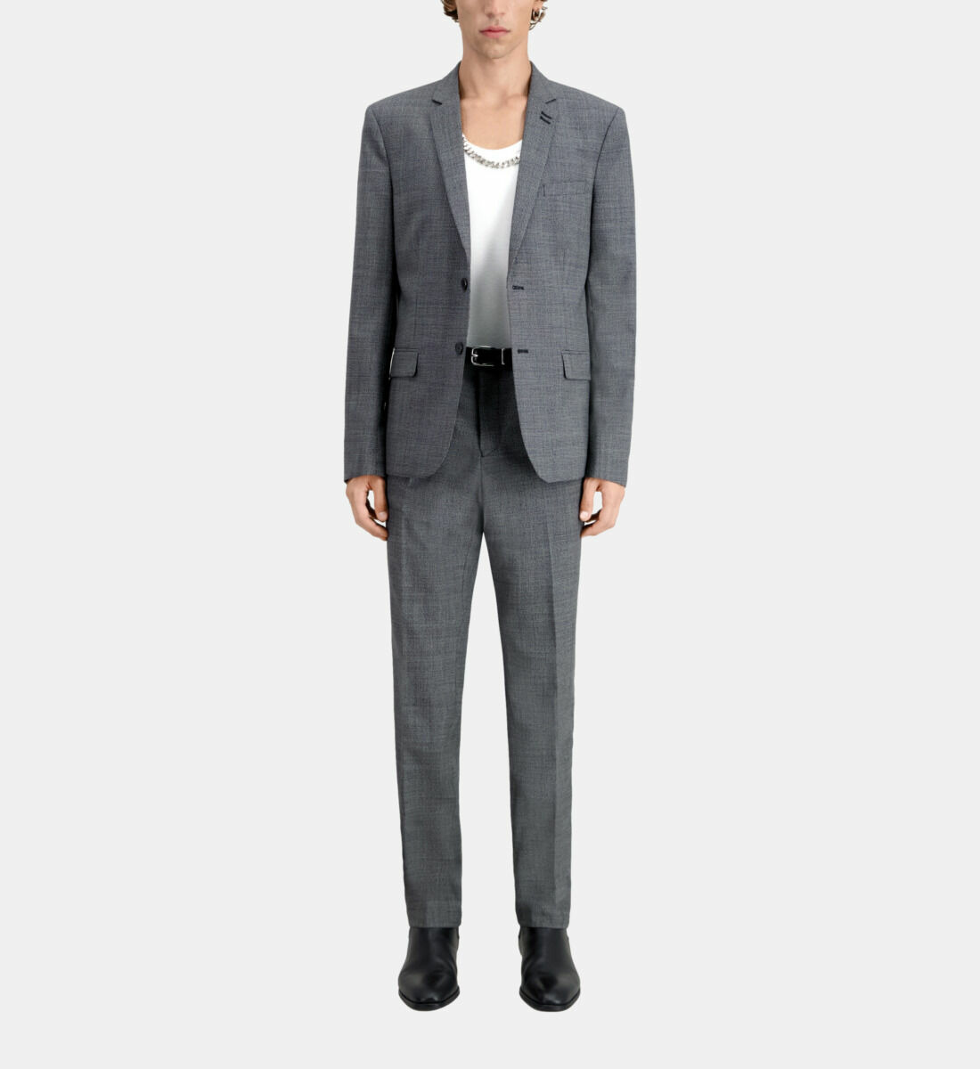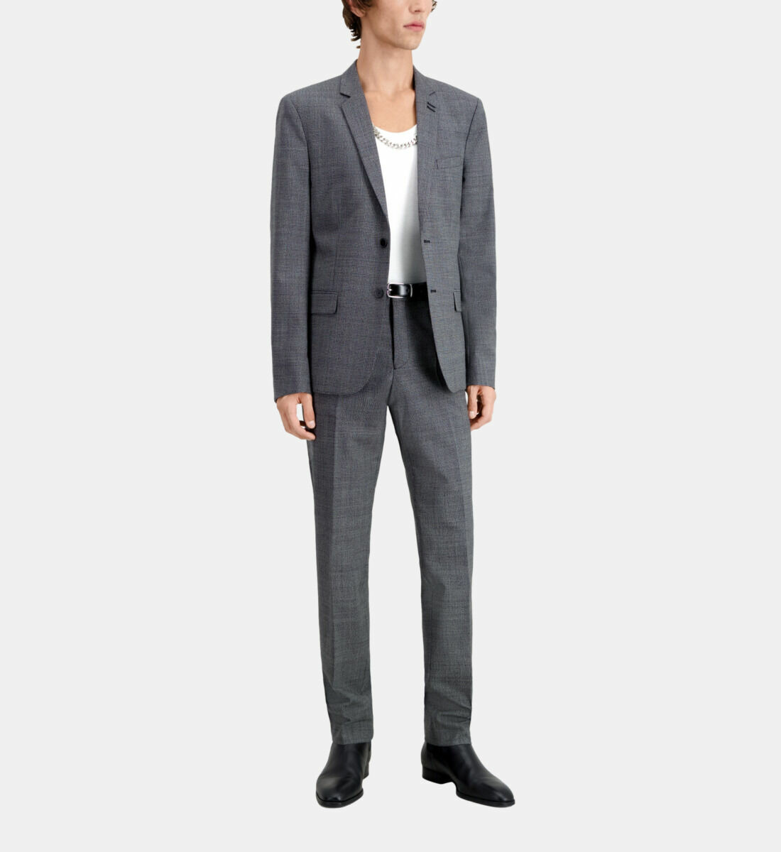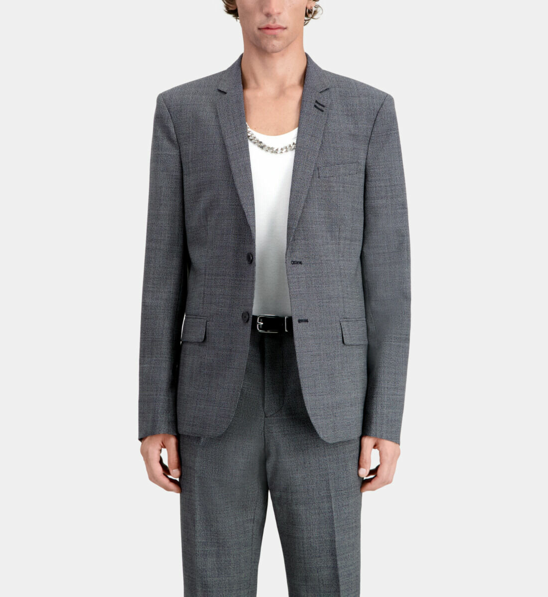 Affirmez votre élégance avec cette veste de costume noire en laine à micro motifs, un essentiel pour un style raffiné et moderne. Conçue pour l’homme qui maîtrise l’art du détail, elle sublime chaque silhouette avec une coupe ajustée impeccable.