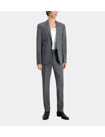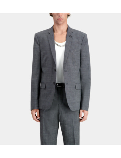 Extérieur : 100% laine. Doublure : 100% viscose. Doublure poche : 68% polyester, 32% coton. Coupe ajustée, col cranté, manches longues, fermeture à deux boutons. Poches passepoilées à rabat devant et poche poitrine. Tissu italien. Entretien : lavage interdit, pas de blanchiment, séchage tambour interdit, repassage à 110° max, nettoyage à sec tous solvants normaux.