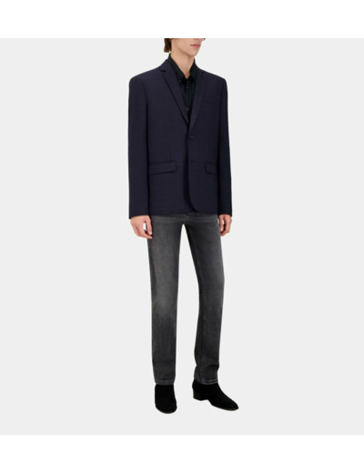 Confectionnée dans un tissu italien en laine, cette veste épouse parfaitement le corps grâce à sa coupe ajustée. Son col cranté et sa fermeture à deux boutons apportent une touche contemporaine, tandis que les poches passepoilées, dont une à la poitrine et deux à rabat devant, allient praticité et esthétisme. Chaque détail, des boutons aux poignets aux finitions soignées, témoigne d’un savoir-faire irréprochable.