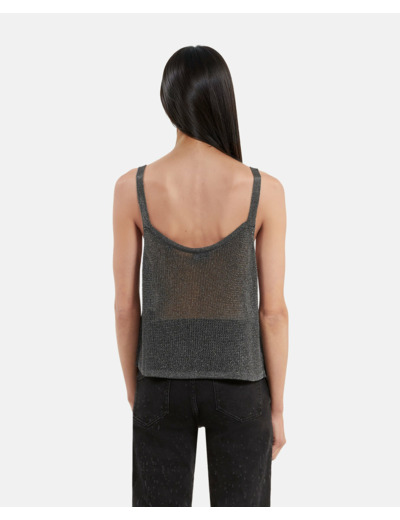 Réponse : Ce top est en côte de maille, offrant texture et confort.