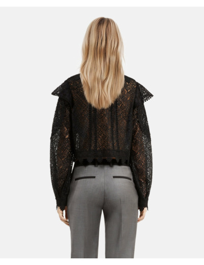 Fabriqué par The Kooples, ce top présente un col montant, des manches longues et des détails de volants en dentelle. Entretien selon les indications du fabricant pour préserver la qualité du tissu.