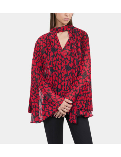 Ce top vous garantit une allure raffinée sans effort, tout en valorisant votre féminité grâce à son imprimé unique et son plissé délicat. Facile à associer, il devient rapidement un incontournable de votre garde-robe, parfait pour passer de la journée au soir avec élégance.