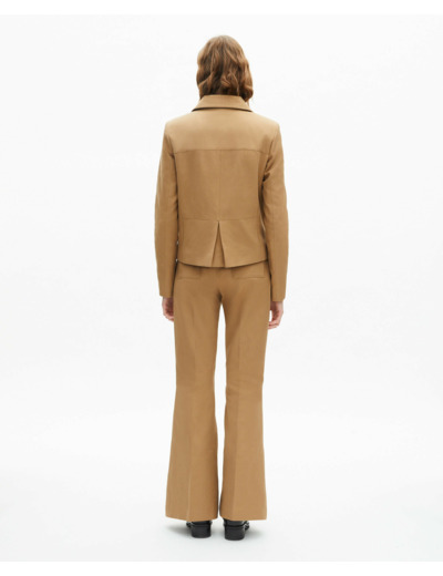 Confectionnée en coton et lin, cette veste offre une coupe droite et ajustée qui épouse délicatement la forme du corps. Son col classique et son boutonnage devant apportent une touche intemporelle, tandis que les poches plaquées à rabat ajoutent fonctionnalité et caractère. Le tissu italien garantit une qualité supérieure et un confort durable, parfait pour vos journées actives ou vos soirées habillées.