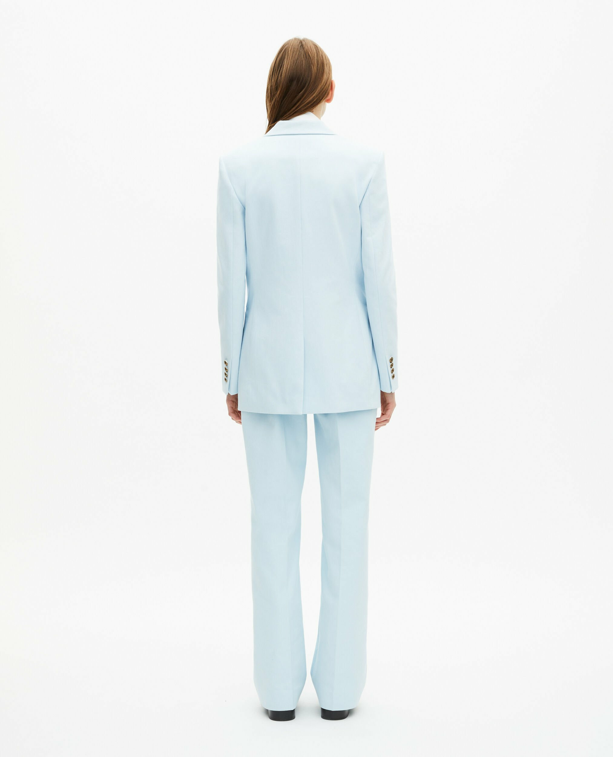 Extérieur 100% coton. Doublure principale 50% acetate, 50% viscose. Doublure manches 100% viscose. Doublure poche 62% polyester, 38% coton. Entretien : lavage interdit, pas de blanchiment, séchage tambour interdit, repassage à 110° maximum, nettoyage à sec avec solvants restreints. Pour un ensemble coordonné, associez cette veste à la référence fpan30041kblu03.