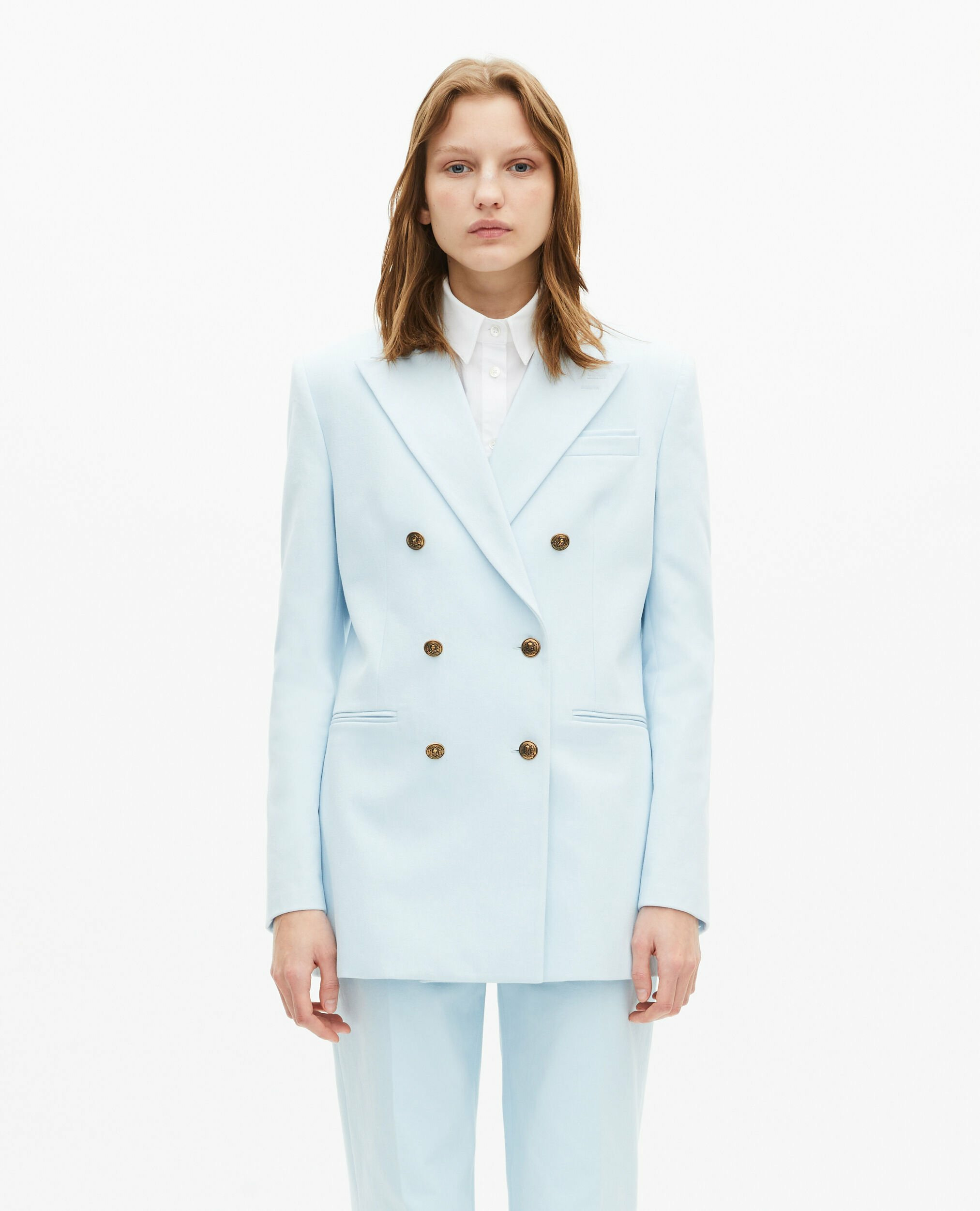 Conçue en coton haut de gamme, cette veste droite se distingue par son col cranté et sa fermeture double boutonnage qui renforcent son allure structurée. Les manches longues avec boutons aux poignets et les poches passepoilées ajoutent une touche fonctionnelle et raffinée. Chaque détail, jusqu’aux boutons héritage, témoigne de la qualité et du style unique de la marque.