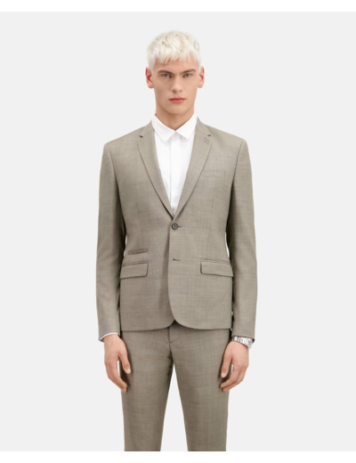 Extérieur : 99% laine, 1% élasthanne. Doublure : 100% viscose. Doublure poche : 68% coton, 32% polyester. Entretien : lavage interdit, pas de blanchiment, séchage tambour interdit, repassage à 110° maximum, nettoyage à sec tous solvants normés.