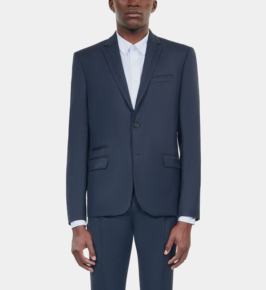 Affirmez votre élégance avec cette veste de costume en laine bleu marine signée The Kooples. Une pièce incontournable pour un style raffiné et contemporain.