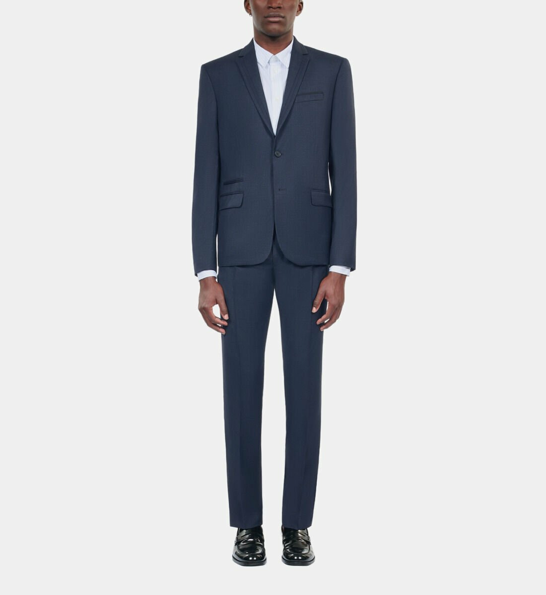 Conçue dans un tissu italien d’exception, cette veste épouse parfaitement la silhouette grâce à sa coupe ajustée. Son col cranté et ses manches longues finies par des boutons aux poignets soulignent une finition soignée. La fermeture à deux boutons et les poches passepoilées et à rabat ajoutent une touche classique et fonctionnelle à ce modèle intemporel.