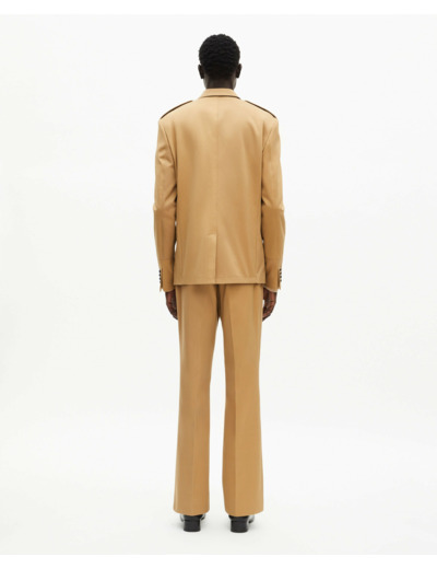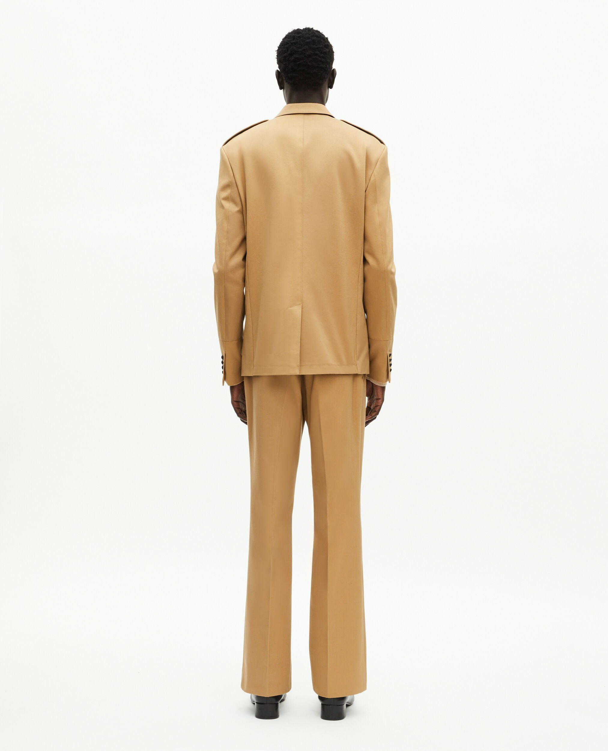 Conçue en coton italien, cette veste combine une coupe droite structurée et des détails militaires revisités, tels que les pattes d’épaule et les poches à rabat. Son col cranté et la fermeture à trois boutons en corne apportent une touche raffinée, tandis que la fente simple au dos assure une aisance de mouvement optimale. Chaque élément est pensé pour sublimer votre silhouette tout en offrant un confort durable.