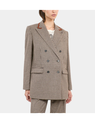 Conçue pour les femmes exigeantes, cette veste mêle la chaleur de la laine à la robustesse du cuir de veau sur l’empiècement, offrant une silhouette structurée et raffinée. Le motif Vichy apporte une touche graphique qui dynamise votre look sans jamais sacrifier la sophistication. Sa doublure en viscose et acetate garantit un confort optimal tout au long de la journée.