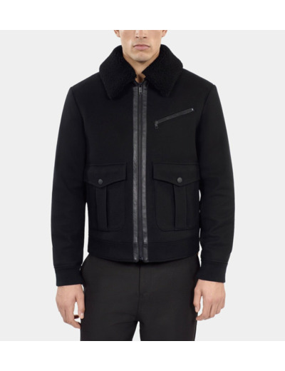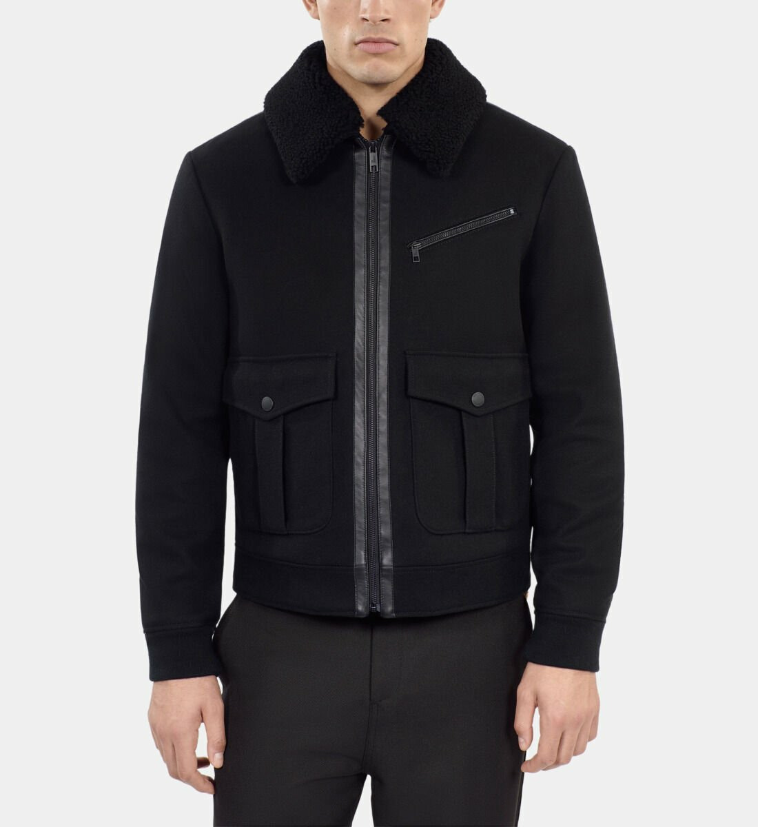 Adoptez l’élégance brute du blouson aviator en laine mélangée noir signé The Kooples. Une pièce qui allie audace et confort pour sublimer votre allure en toute saison.