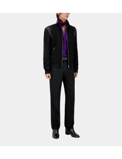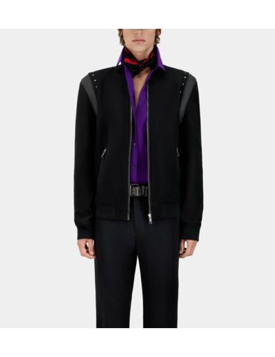 Affirmez votre style avec ce blouson noir alliant audace et élégance. Les studs et empiècements en cuir apportent une touche rock raffinée à une silhouette moderne et confortable.