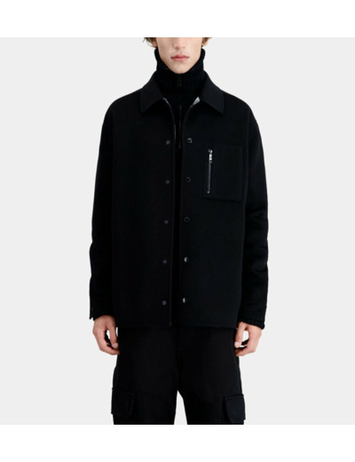 Affirmez votre style avec ce blouson type surchemise noir en laine mélangée, alliant élégance et confort pour un look urbain maîtrisé. Une pièce essentielle pour traverser les saisons avec assurance.