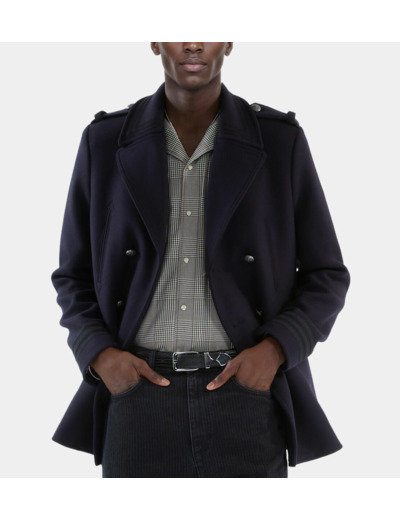 Adoptez l’élégance intemporelle du caban style officier bleu marine signé The Kooples. Un manteau qui allie rigueur militaire et modernité urbaine pour affirmer votre style avec assurance.