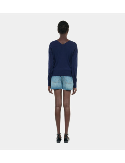 Adoptez l’élégance intemporelle du cardigan en laine bleu marine signé The Kooples. Une pièce essentielle qui allie confort et style avec une simplicité maîtrisée.