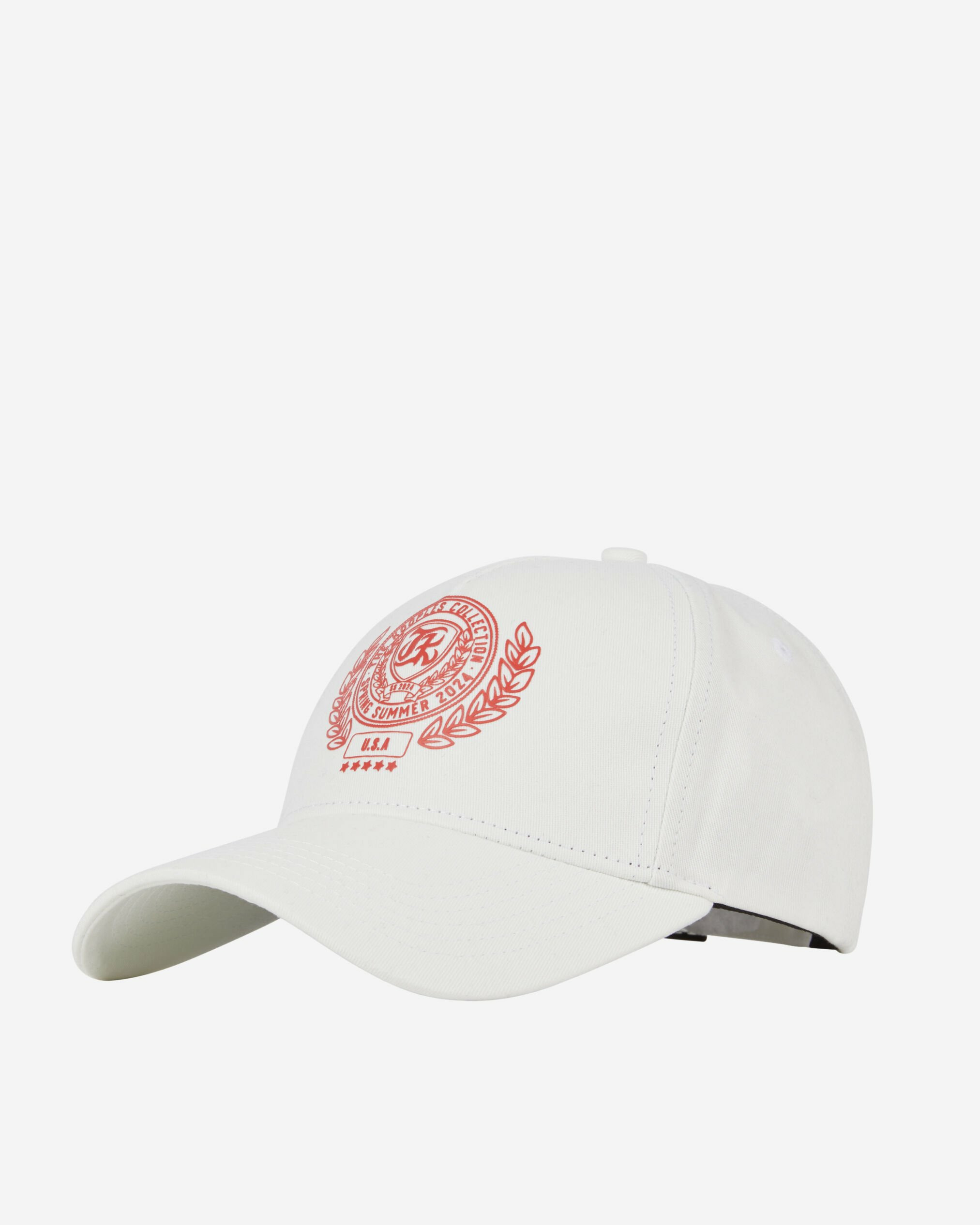 Composition 100% coton. Entretien facile pour un usage quotidien. Sérigraphie devant, visière arrondie, boucle de réglage à l’arrière.