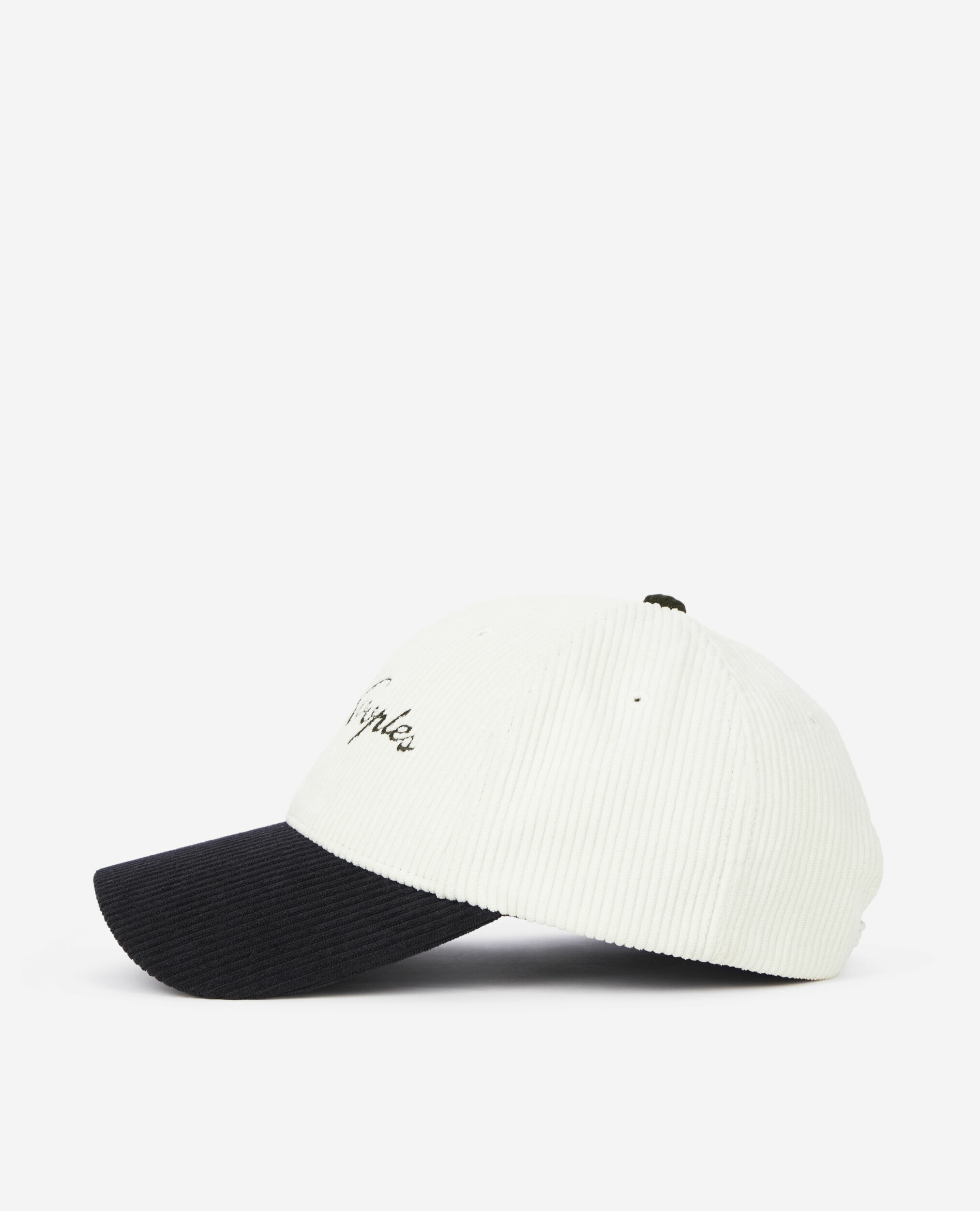 La casquette est composée d’un extérieur 100 % polyester et d’une doublure 100 % coton. Le lavage est interdit, tout comme le blanchiment, le séchage en tambour et le repassage. Le nettoyage à sec avec solvants normés est recommandé pour préserver la qualité du velours et de la broderie.