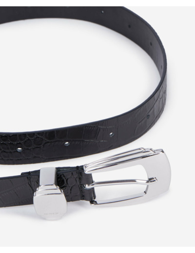 Affirmez votre style avec cette ceinture en cuir effet crocodile signée The Kooples. Une touche d’élégance brute qui sublime toutes vos tenues.