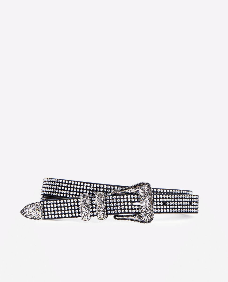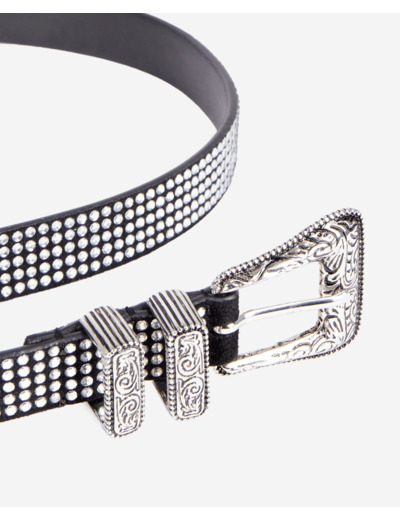 Affirmez votre style avec cette ceinture fine en cuir ornée de strass et d’une boucle western argentée. Une touche d’éclat subtile qui sublime toutes vos tenues, du jean casual à la robe élégante.