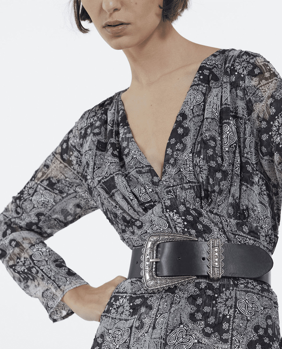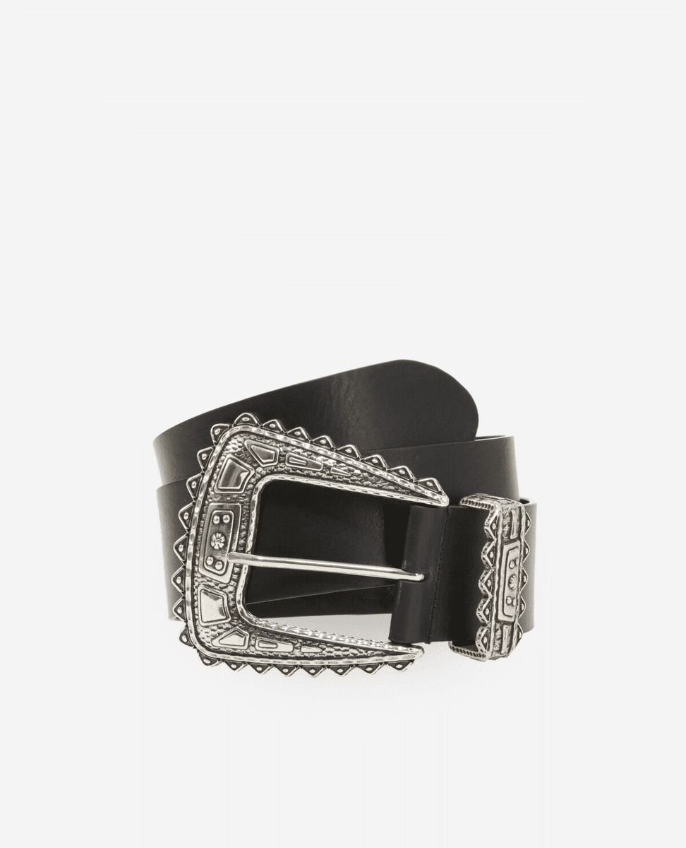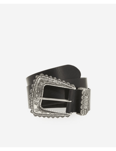 Affirmez votre style avec cette ceinture large en cuir à boucle western, un accessoire qui impose son caractère. The Kooples signe une pièce audacieuse, parfaite pour sublimer toutes vos tenues.