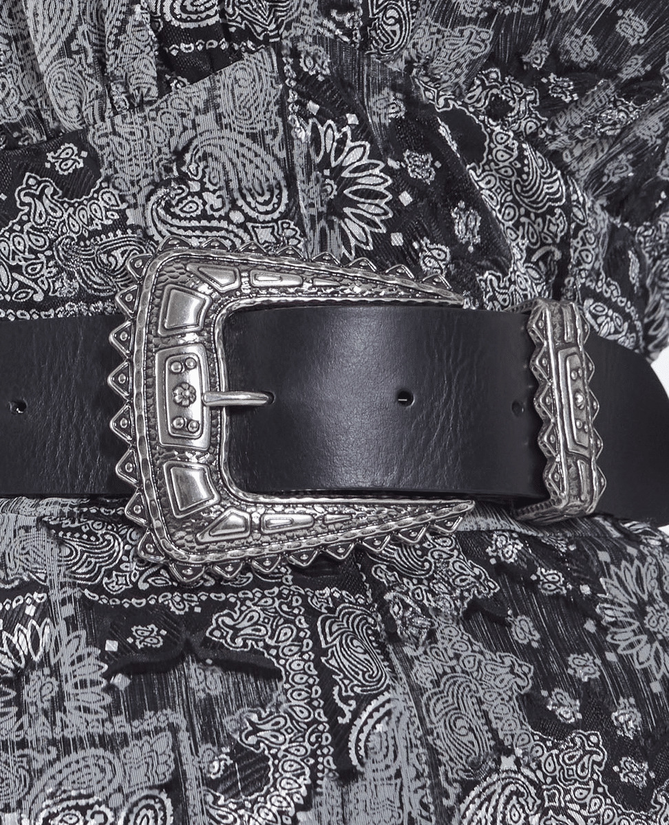 Conçue pour les femmes qui aiment mêler élégance et esprit rock, cette ceinture en cuir véritable se distingue par sa boucle western massive, symbole d’authenticité et de modernité. Elle apporte une touche brute et raffinée à vos jeans, robes ou vestes, tout en soulignant votre silhouette avec assurance.