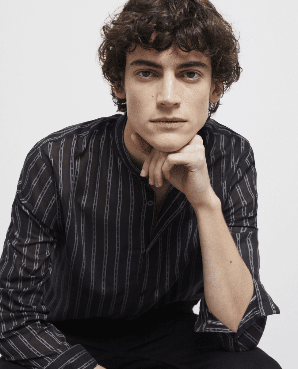 Affirmez votre style avec cette chemise à col tunisien noire, subtilement rehaussée de rayures contrastées. Une pièce essentielle pour un look moderne et soigné, signée The Kooples.