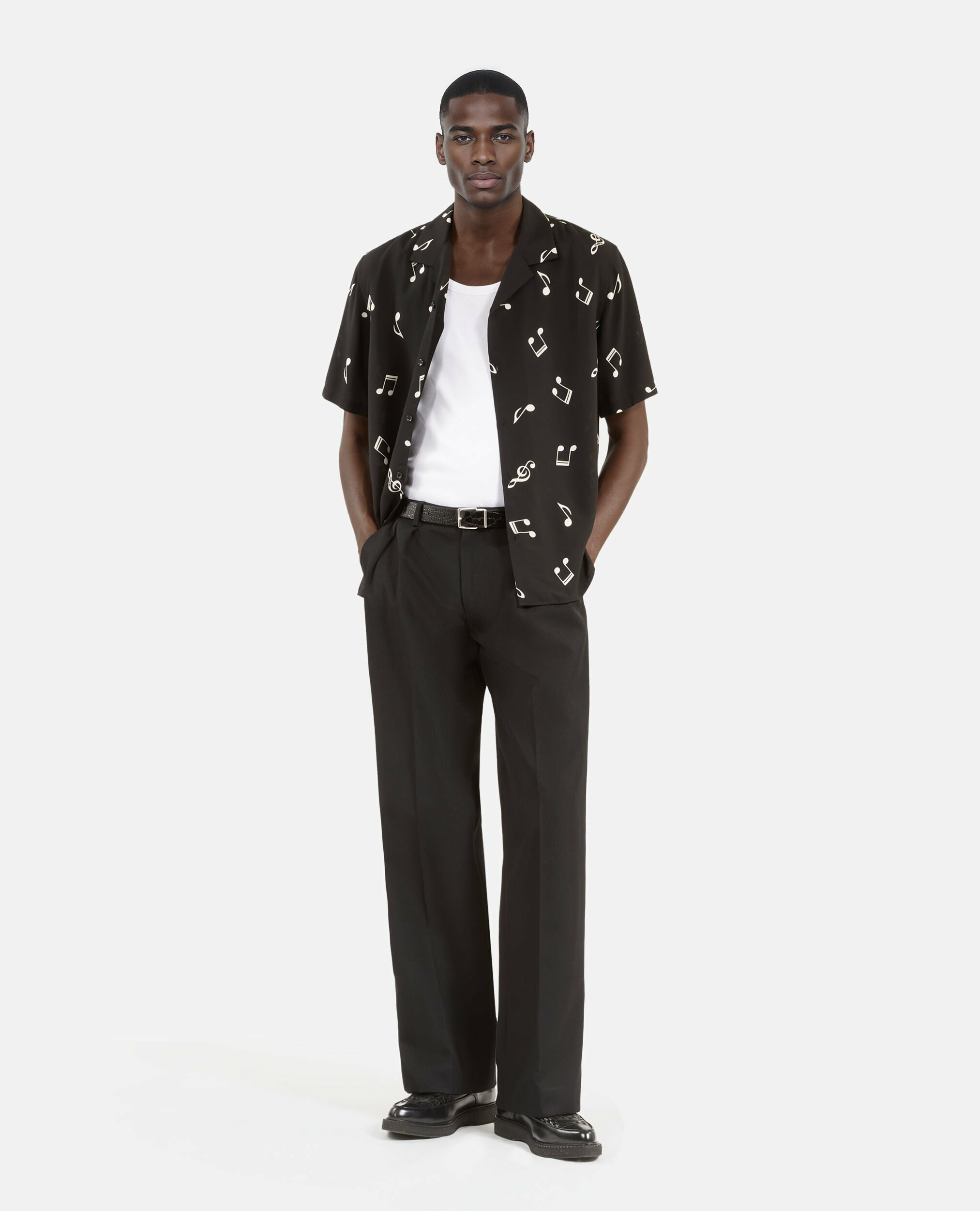 Cette chemise homme se distingue par son imprimé musique en noir et blanc, qui apporte une touche artistique et contemporaine à votre tenue. Le col hawaïen ajoute une note de décontraction élégante, tandis que les manches courtes garantissent confort et légèreté, idéales pour les journées chaudes. Son design épuré et ses boutons noirs renforcent son allure moderne et facile à associer.