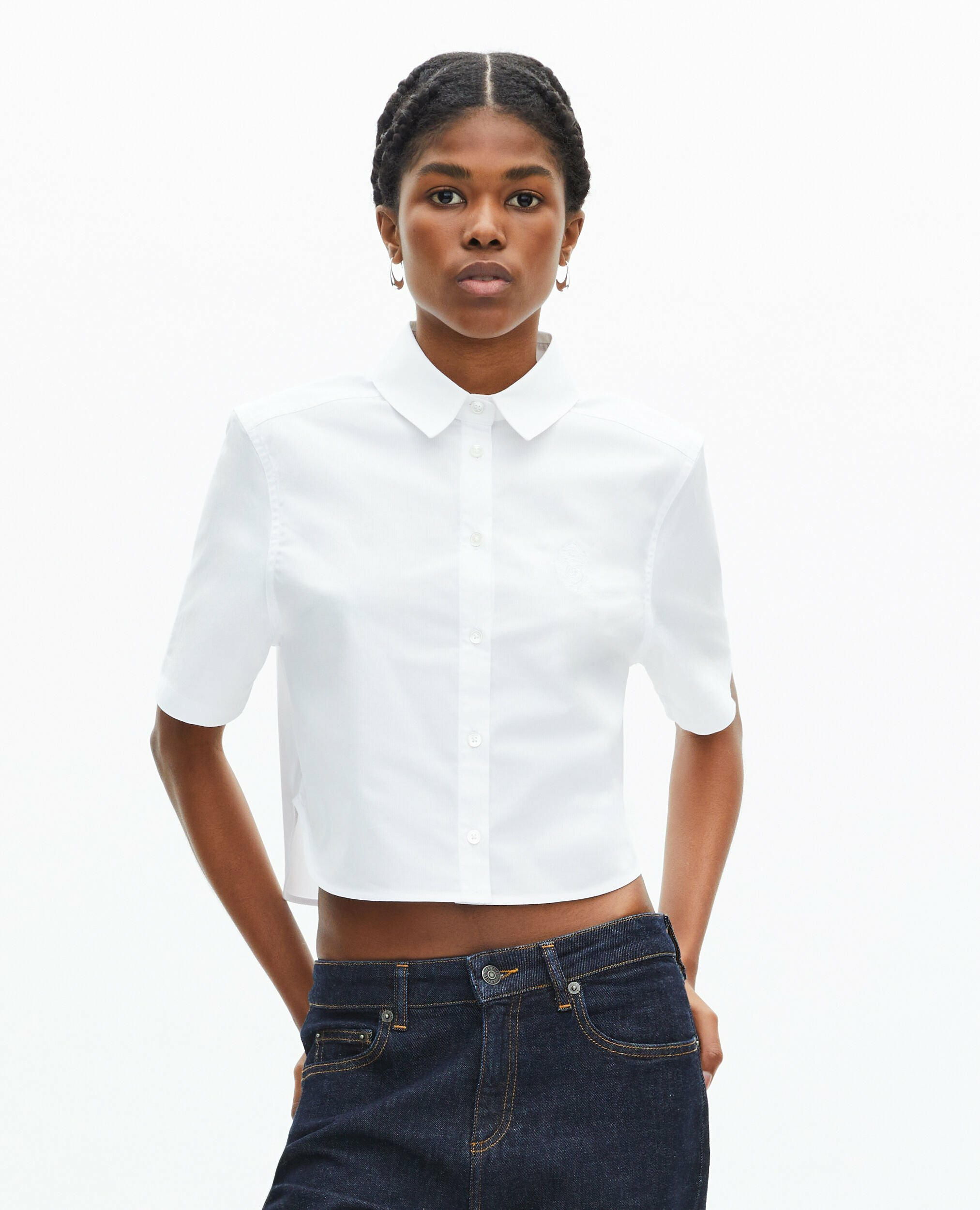 Fabriquée dans des matériaux de qualité, cette chemise femme présente un col classique, des manches courtes, une patte de boutonnage simple, des boutons nacrés et un blason brodé The Kooples, garantissant un produit durable et élégant.
