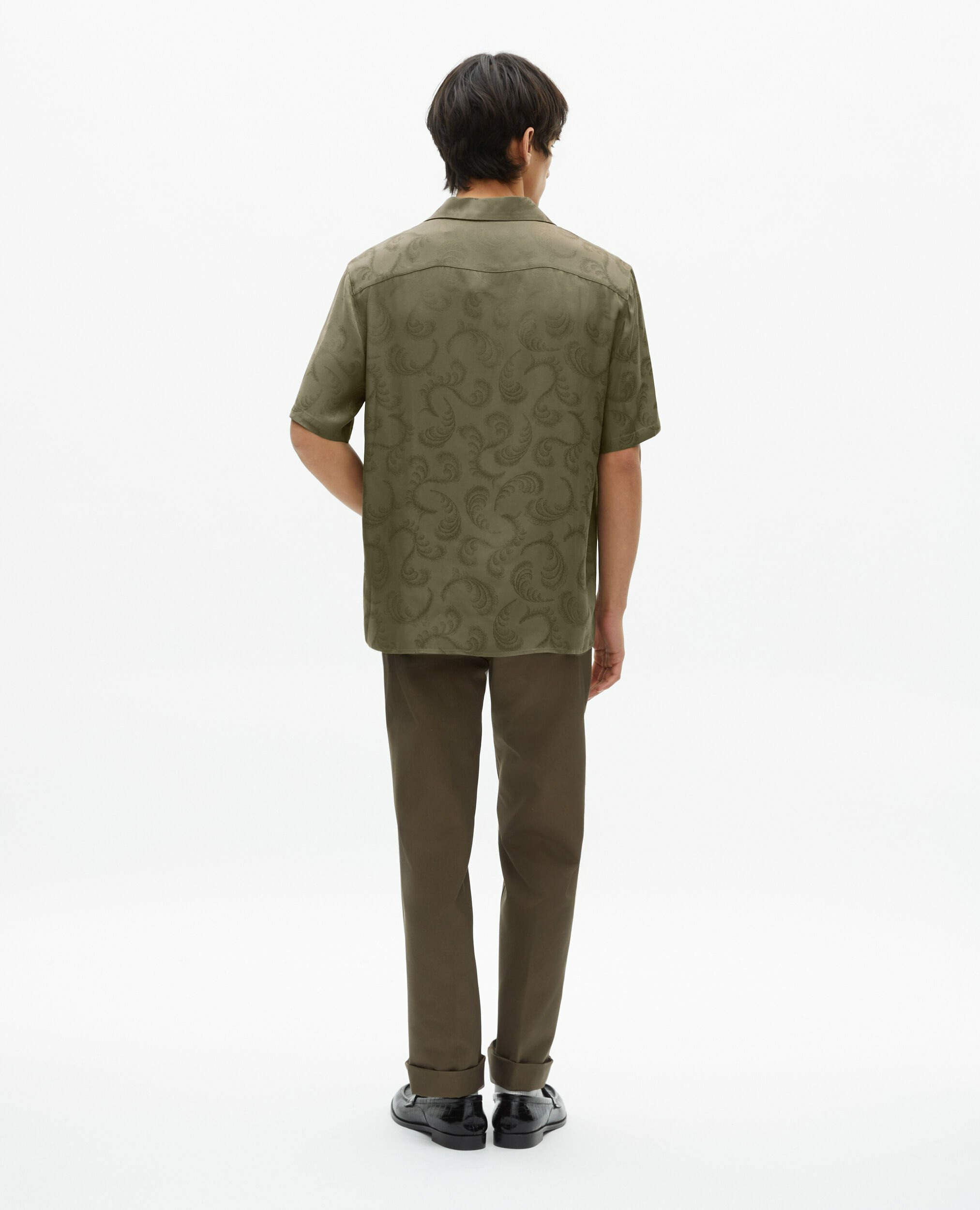 Question ? Quel est le motif de cette chemise ? Réponse. Elle arbore un imprimé jacquard plumes, unique et élégant.