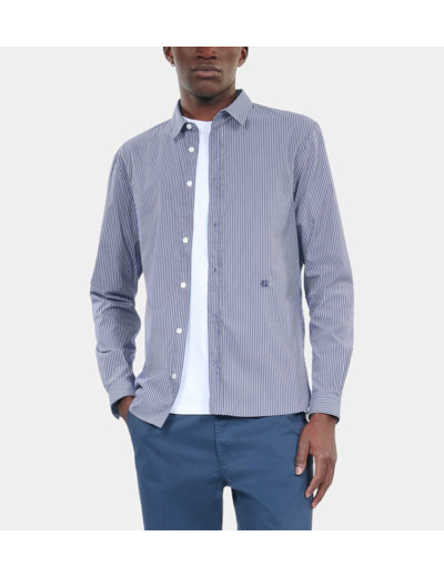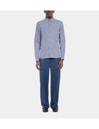 Conçue pour un ajustement parfait, cette chemise à rayures bleues et blanches offre un look dynamique et raffiné. Son col classique et sa patte de boutonnage américaine apportent une touche de sophistication discrète, tandis que les manches longues et le rivet au bas de manche témoignent d’un savoir-faire précis et durable.