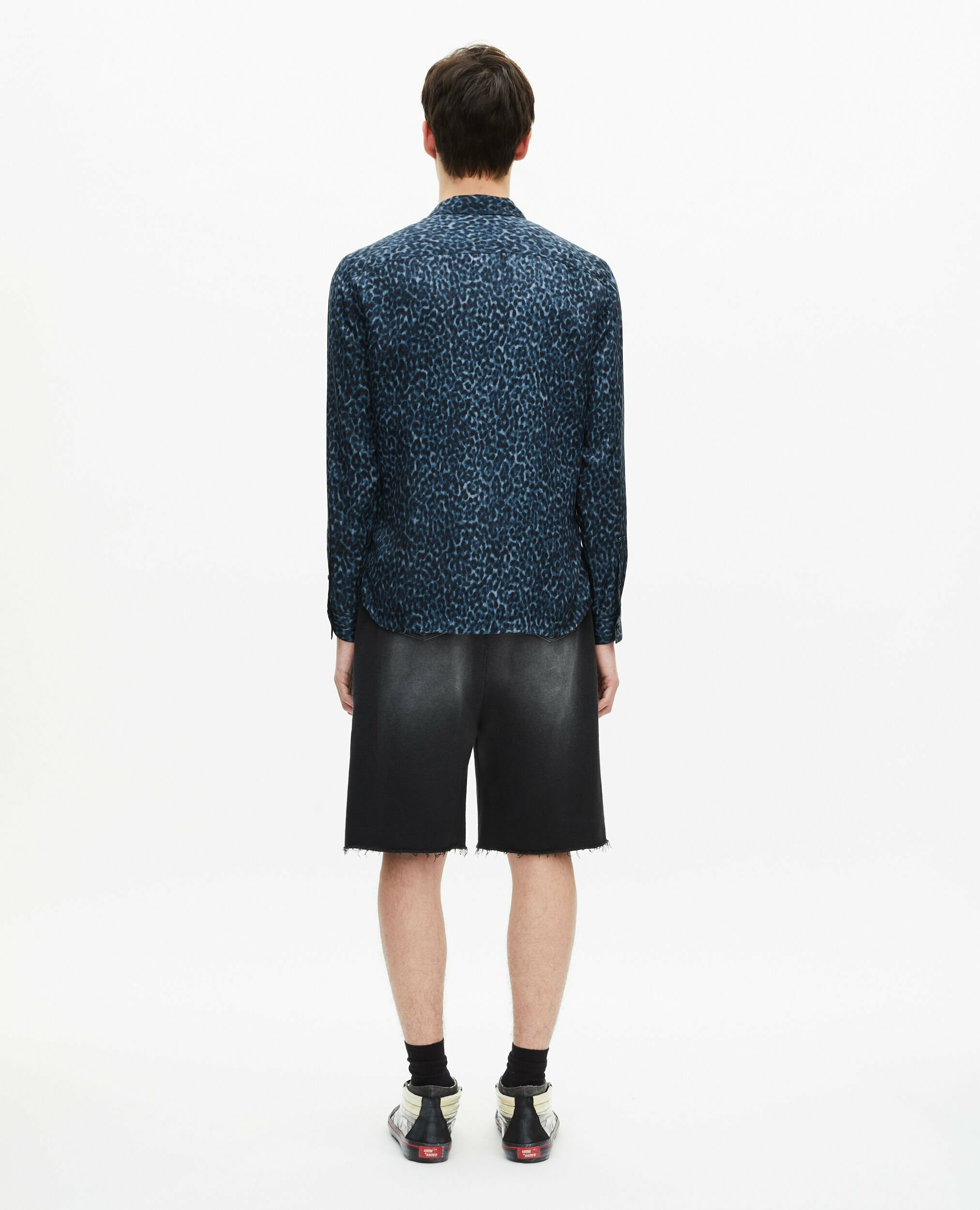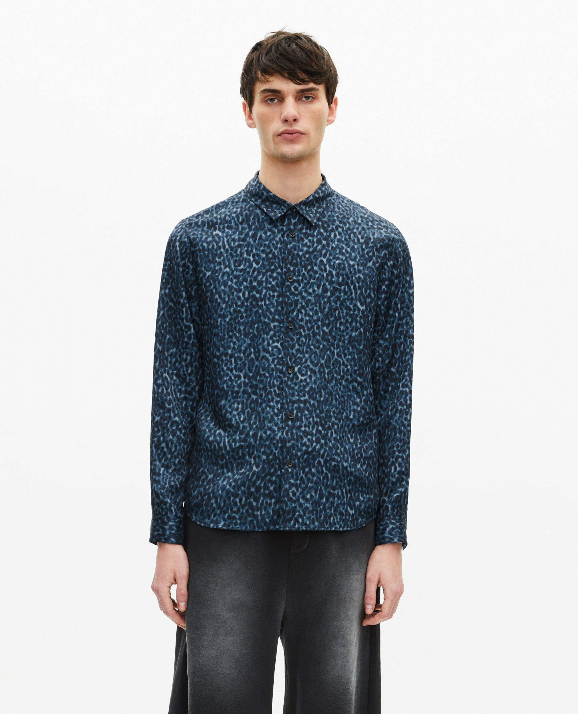 Conçue pour l’homme qui ose, cette chemise associe un imprimé léopard bleu et noir à une coupe droite et un col classique, offrant une silhouette nette et contemporaine. Les manches longues et les boutons noirs aux poignets ajoutent une finition soignée, tandis que la patte de boutonnage simple garantit une mise en place facile et un confort optimal.