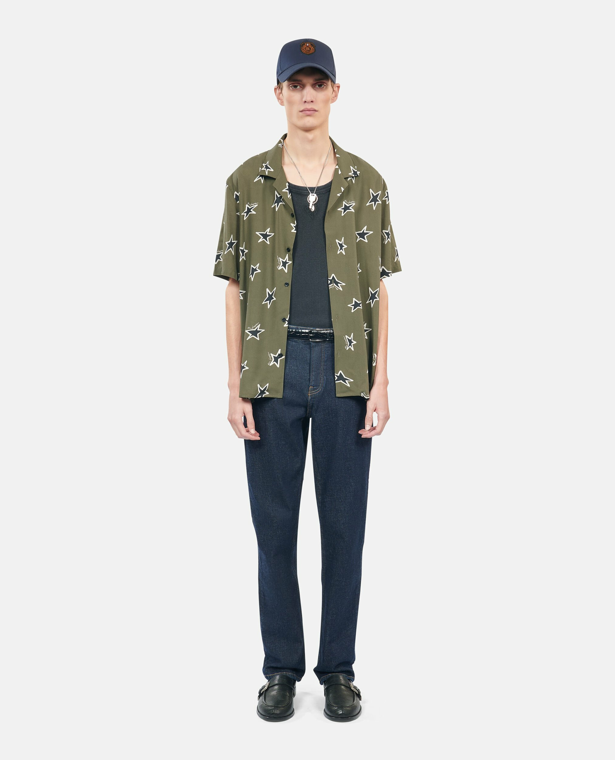Affirmez votre style avec cette chemise imprimée manches courtes signée The Kooples, où élégance et décontraction se rencontrent. Son motif étoiles kaki et noir apporte une touche moderne à une coupe droite classique.
