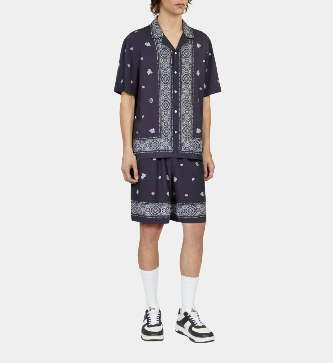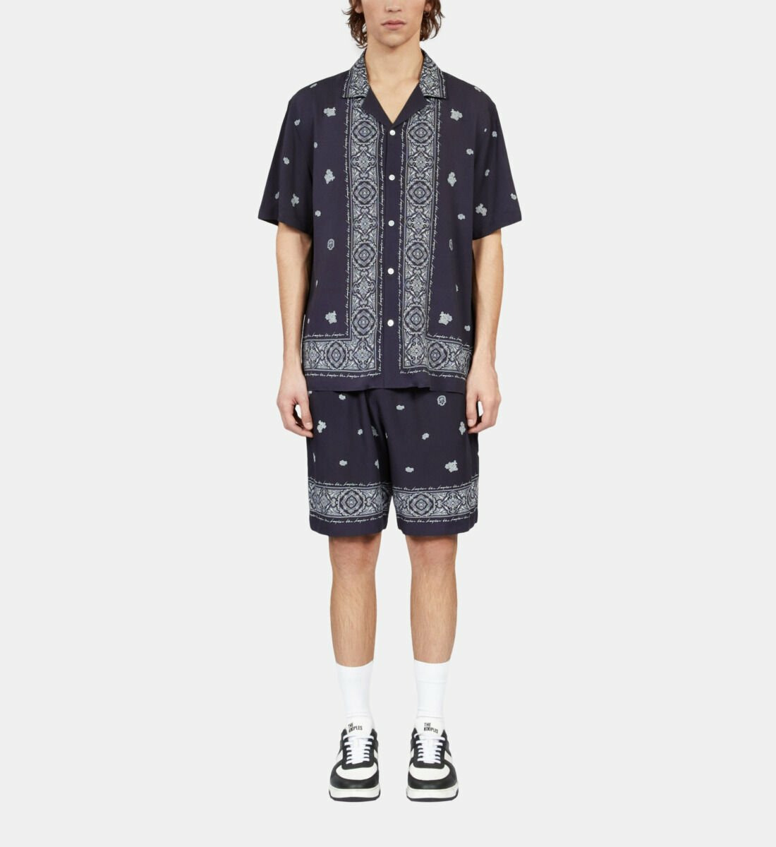 Affichez un style affirmé et décontracté avec cette chemise imprimée à manches courtes, parfaite pour vos journées d'été ou vos soirées casual. Son imprimé paisley bleu marine et écru apporte une touche d’élégance subtile à votre tenue.