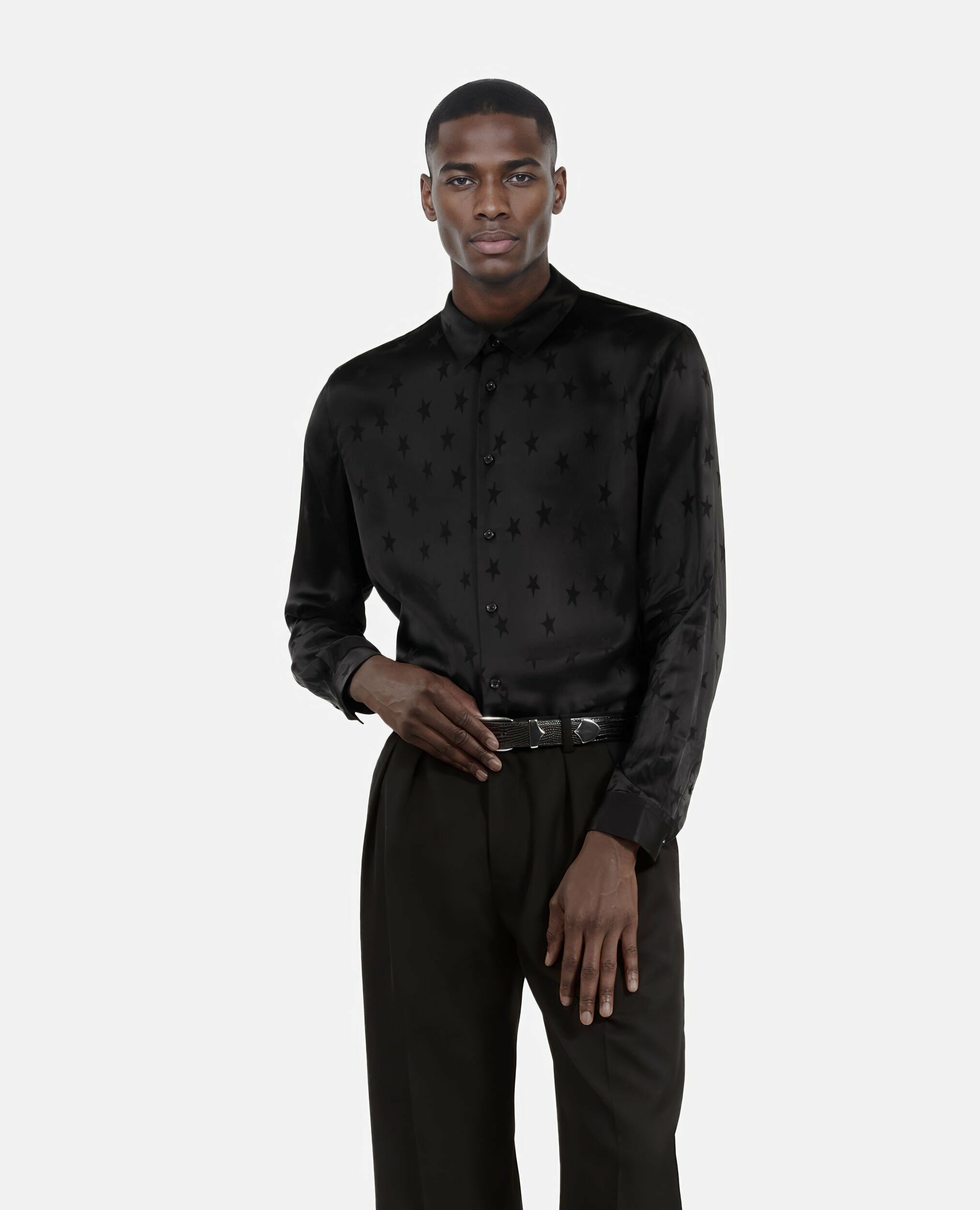 Affirmez votre style avec la chemise Jacquard Étoiles noire signée The Kooples, une pièce qui allie élégance et audace. Son motif étoilé discret sur une base noire apporte une touche contemporaine à votre garde-robe.
