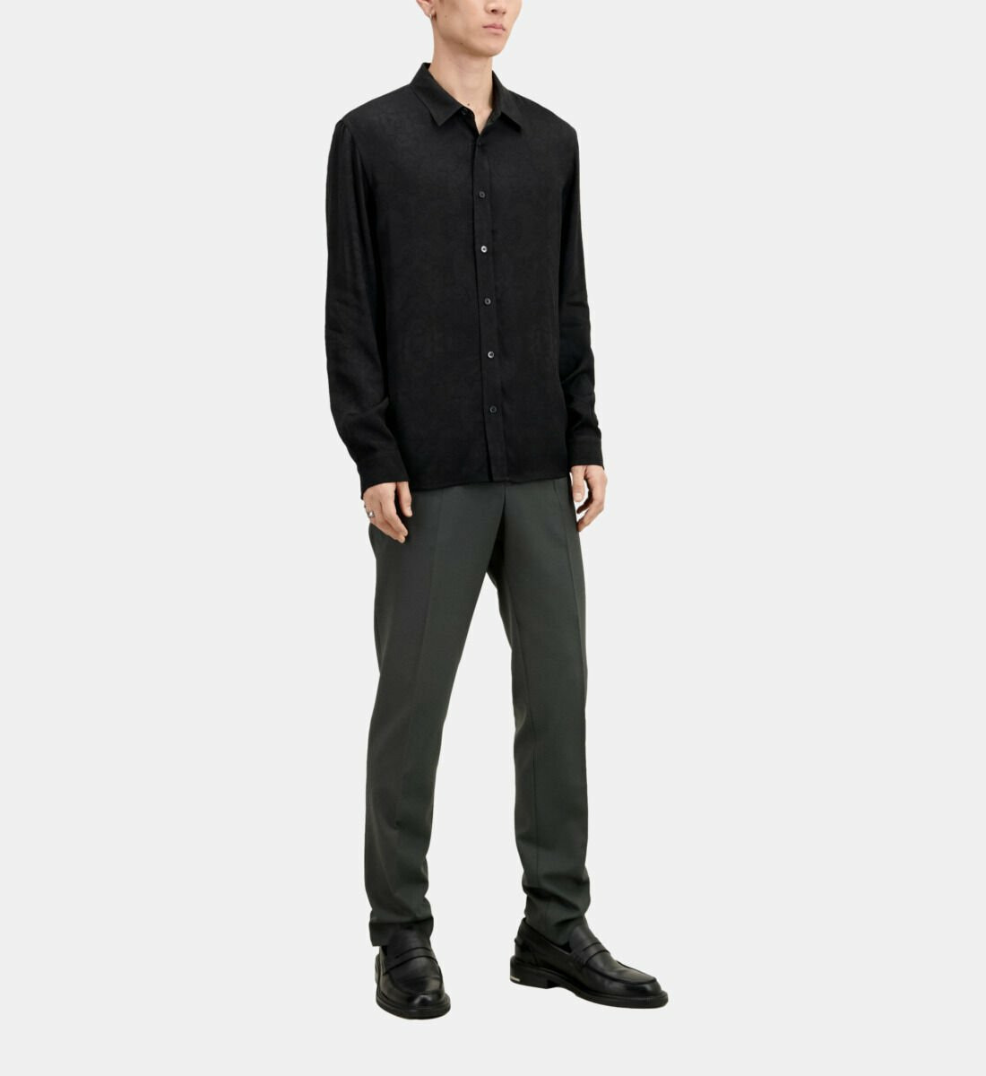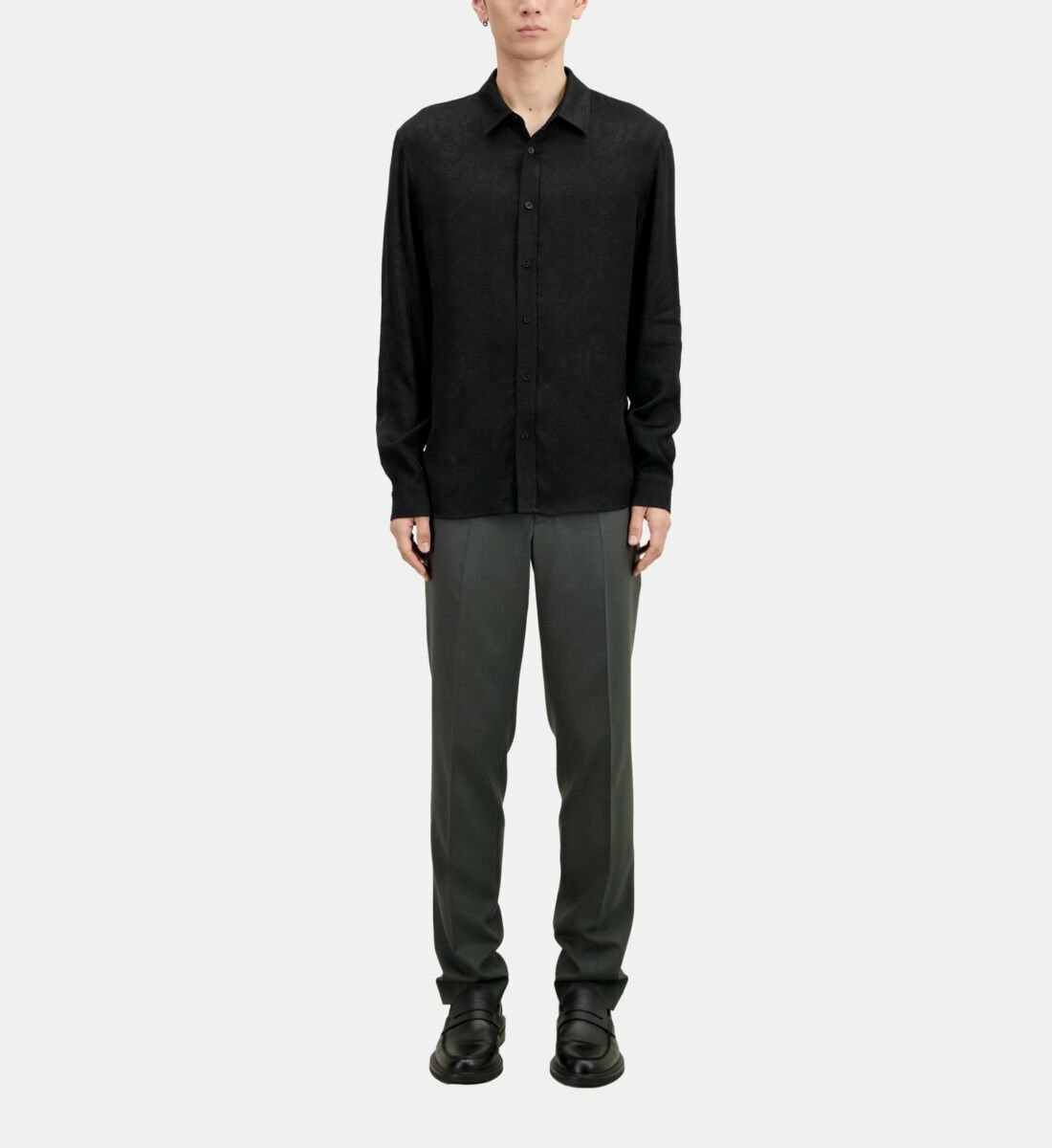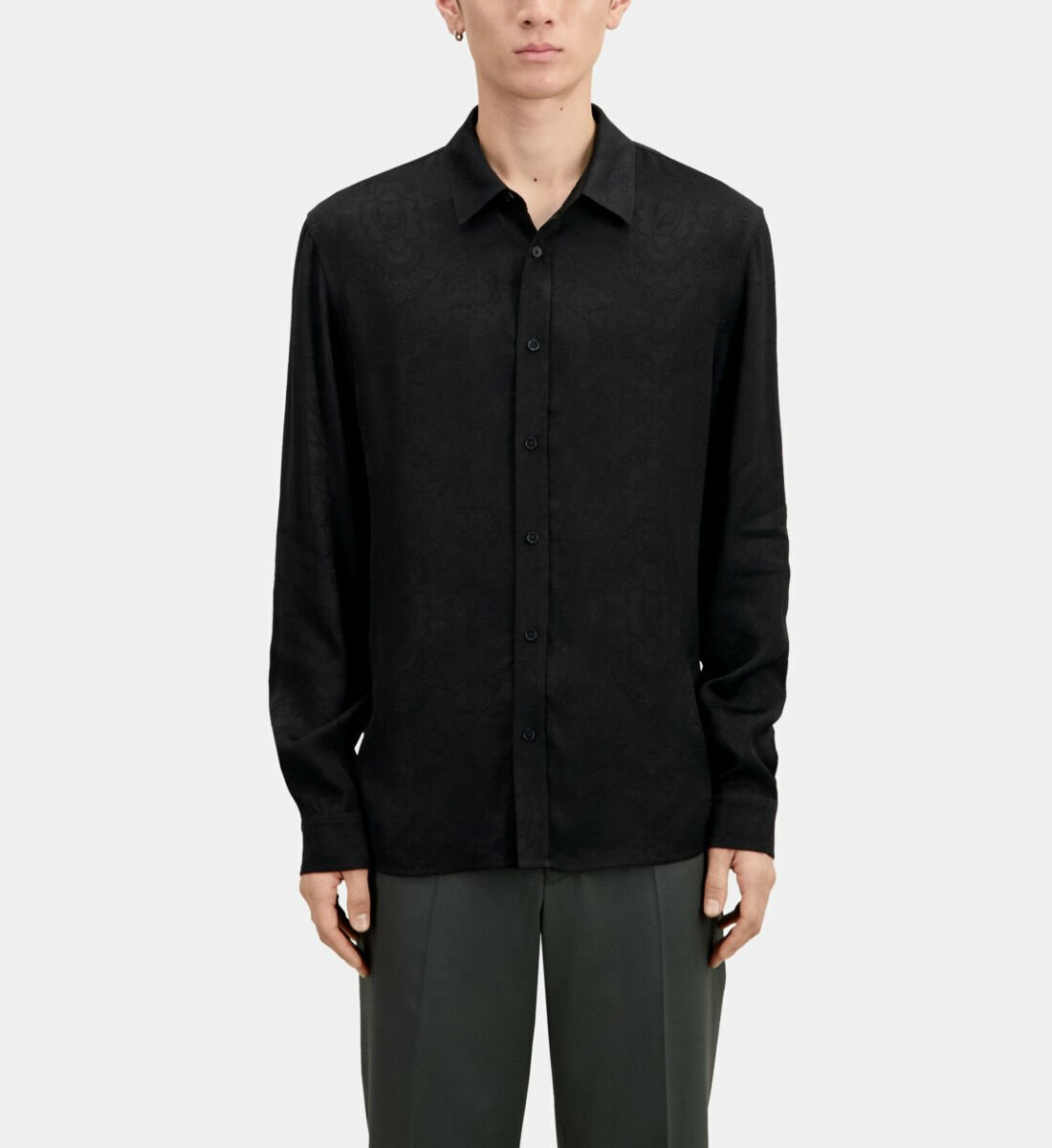 Conçue dans une viscose fluide, cette chemise offre une coupe droite qui épouse la silhouette sans la contraindre. Son col classique et ses manches longues avec poignets à boutons apportent une touche intemporelle, tandis que la patte de boutonnage américaine et les boutons noirs renforcent son allure soignée. Le jacquard à motifs têtes de mort ajoute une dimension graphique et moderne, idéale pour dynamiser vos tenues.