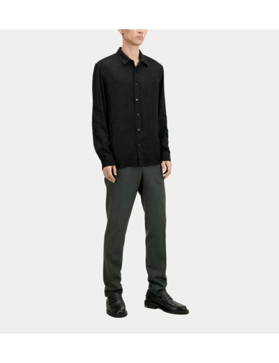 Extérieur 100% viscose. Entretien recommandé selon les instructions du fabricant. Coupe droite, col classique, manches longues, poignets avec boutons, patte de boutonnage américaine, boutons noirs.