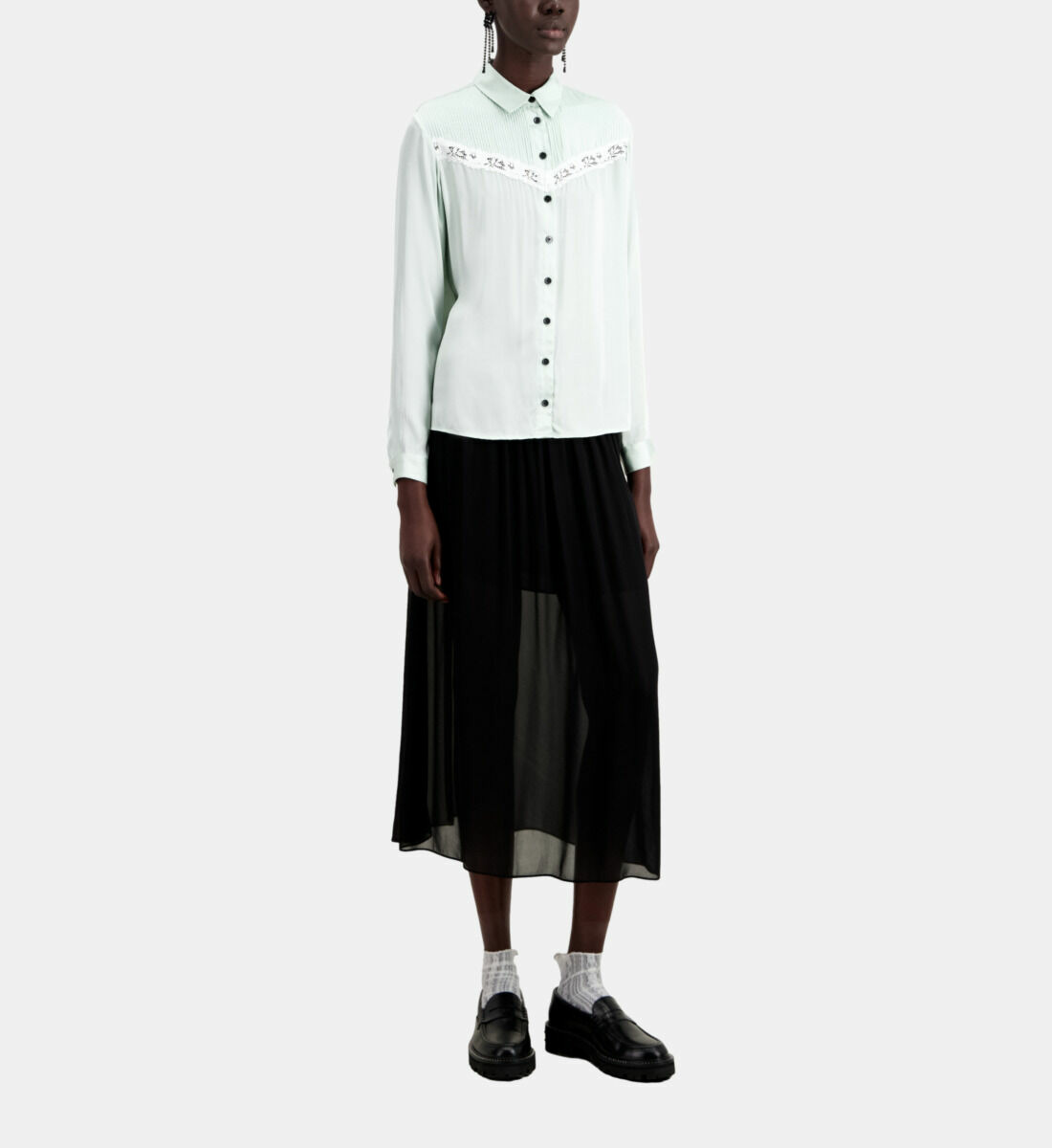 Affirmez votre élégance avec cette chemise manches longues signée The Kooples, alliant délicatesse et modernité. Une pièce incontournable pour sublimer votre silhouette en toute saison.