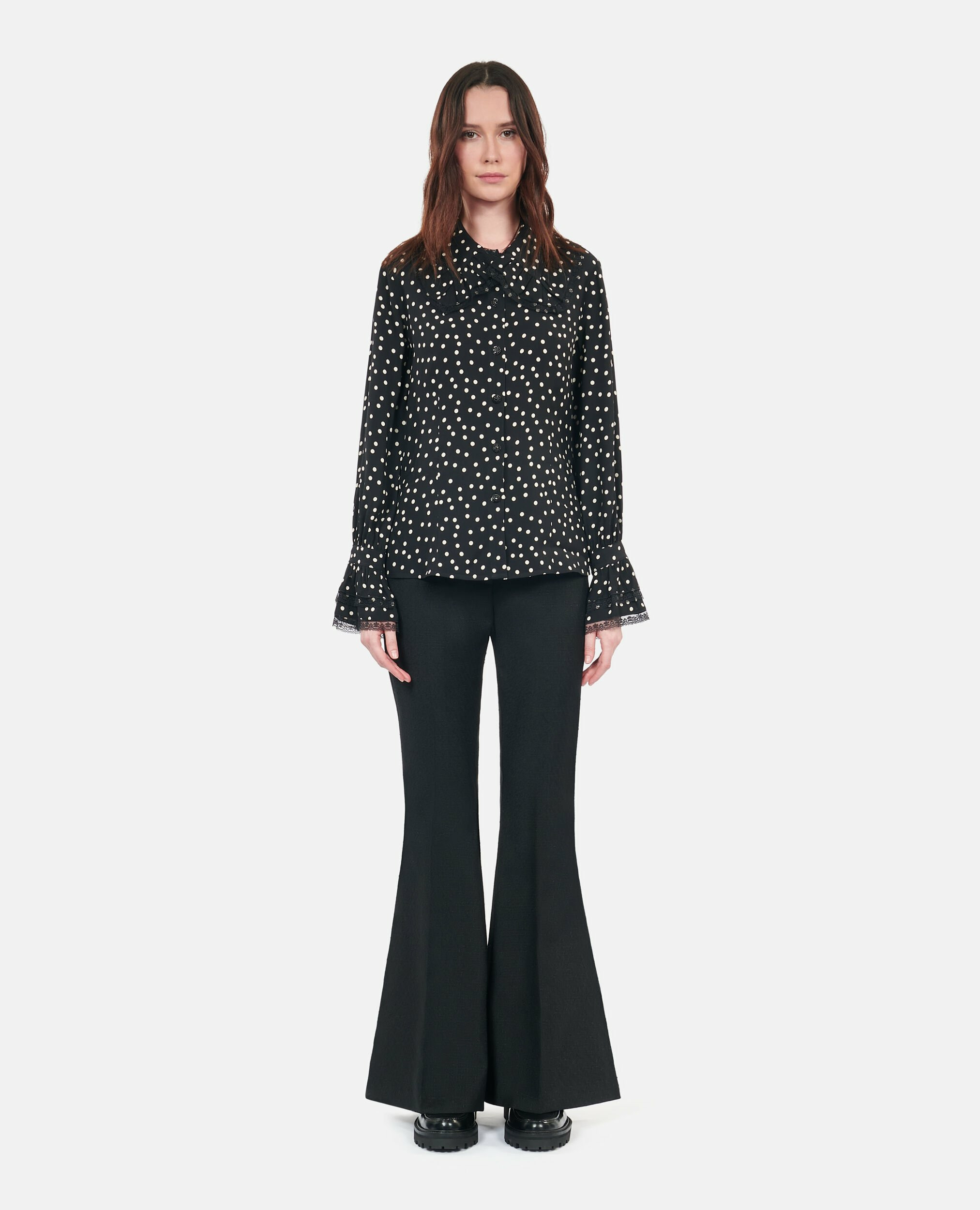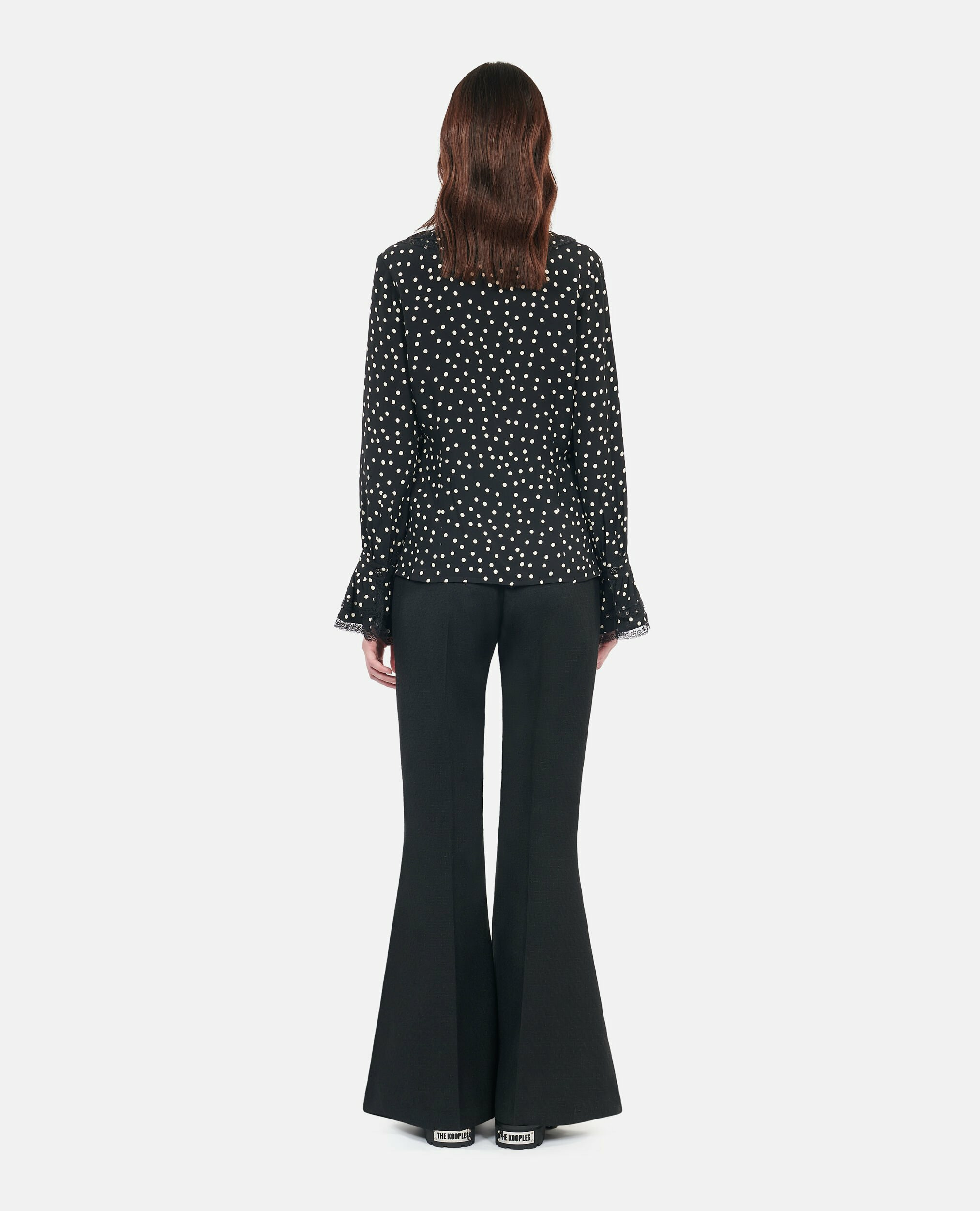 Affirmez votre élégance avec cette chemise noire à pois signée The Kooples, un équilibre parfait entre audace et raffinement. Son imprimé noir et blanc apporte une touche graphique qui dynamise votre silhouette.